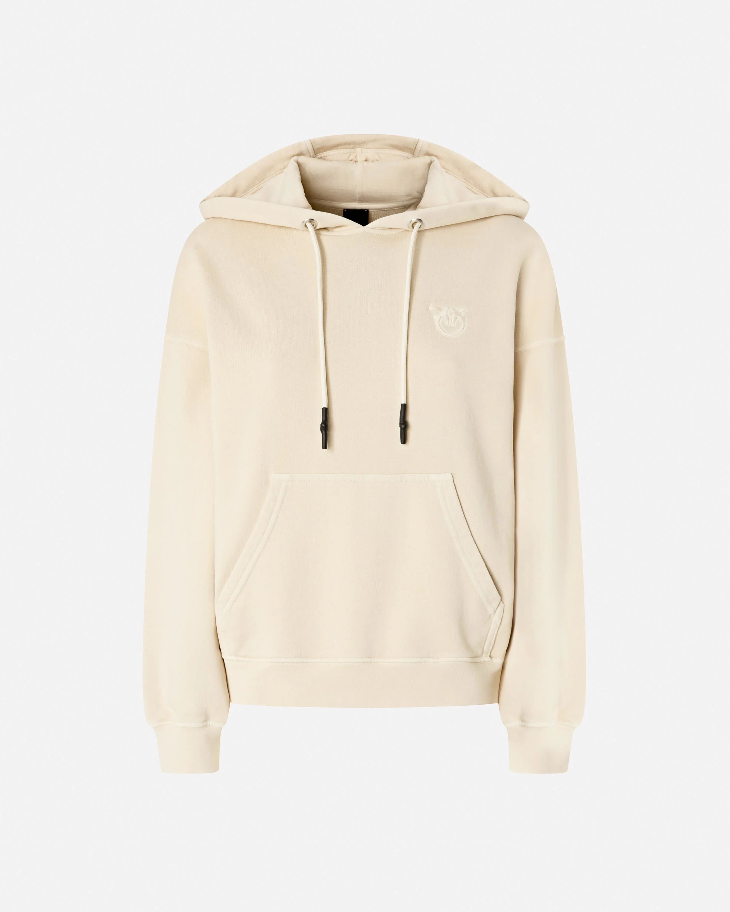 105507A2RB-C03 Relaxed-fit sweatshirt in aged-effect dyed cotton fabric. The embroidered Love Birds logo on the front left side adds pure PINKO style to the piece. Hood with drawstring, long low set-in sleeves and pouch pocket at the front. Pair with the trousers in the same fabric for a comfy, original head-to-toe look during your leisure time. COMPOSITION 1° Outside Fabric: COTTON 100% - 2° Outside Fabric: COTTON 95% ELASTANE 5% - 3° Outside Fabric: COTTON 100% - : COTTON 100% MEASURES W: 0.6 g