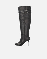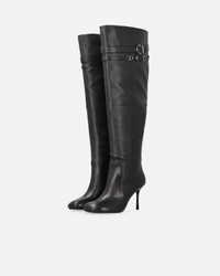 SD0281P003-Z99 Knee-high boots in soft, smooth fine nappa leather, featuring a leg shaft with an inner zip to help put them on and a refined, metal ring-adorned strap. The rounded toe and slender 8.5cm-high heel give these shoes a bold, feminine look. The boots have leather inner lining, a leather insole with light padding and a sole made from tunit, a synthetic material with properties very similar to those of leather. These boots pair perfectly with midi dresses for a more boho-chic look, as well as giving elegant special-evening outfits a bold touch. COMPOSITION Lining: GOATSKIN 100% - : GOATSKIN 100% - Sole: GOATSKIN 100% - Sole: ELASTODIENE 100% RUBBER 100% MEASURES W: 2.6 g