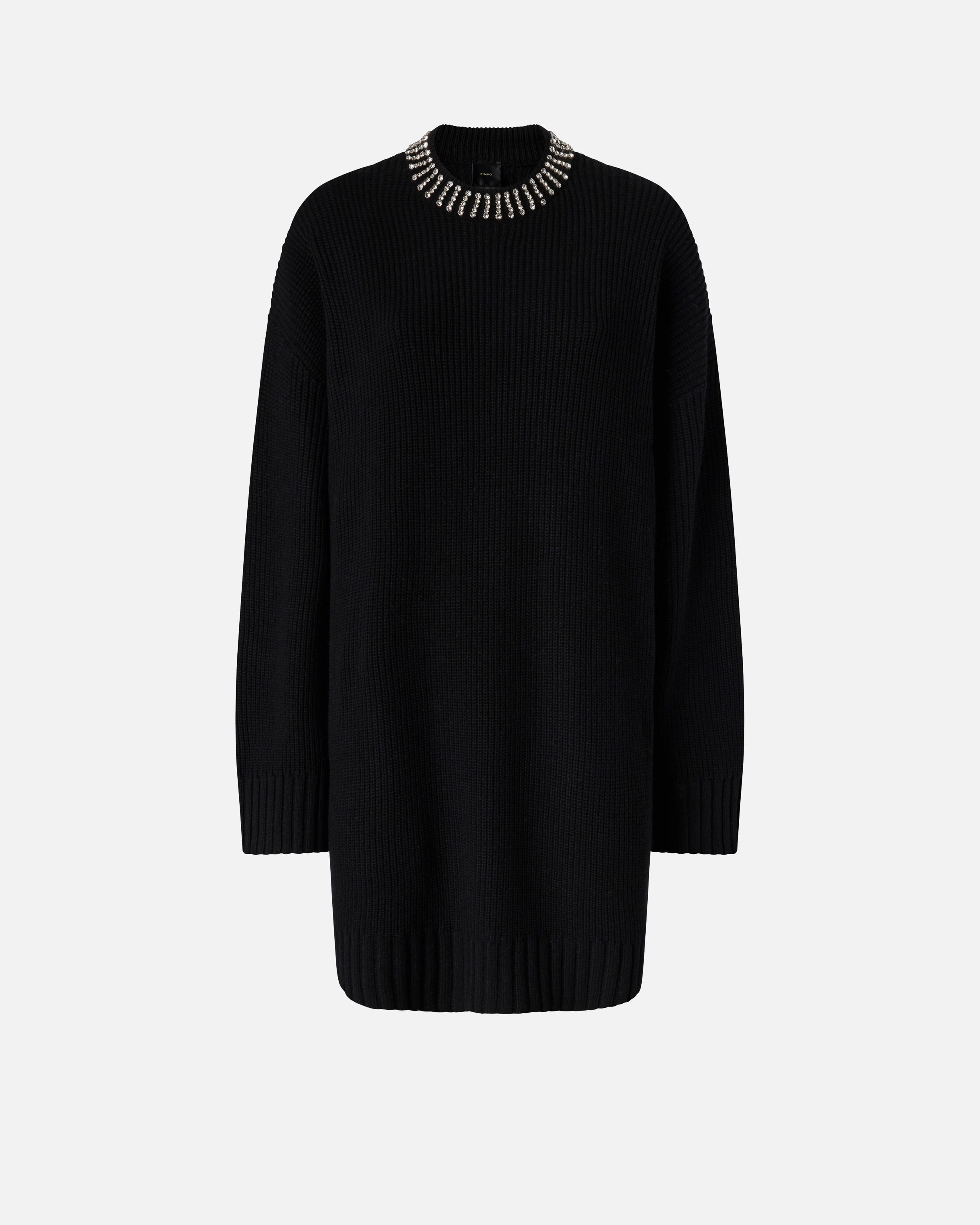 KNIT DRESS WITH RHINESTONE-DETAILED NECK