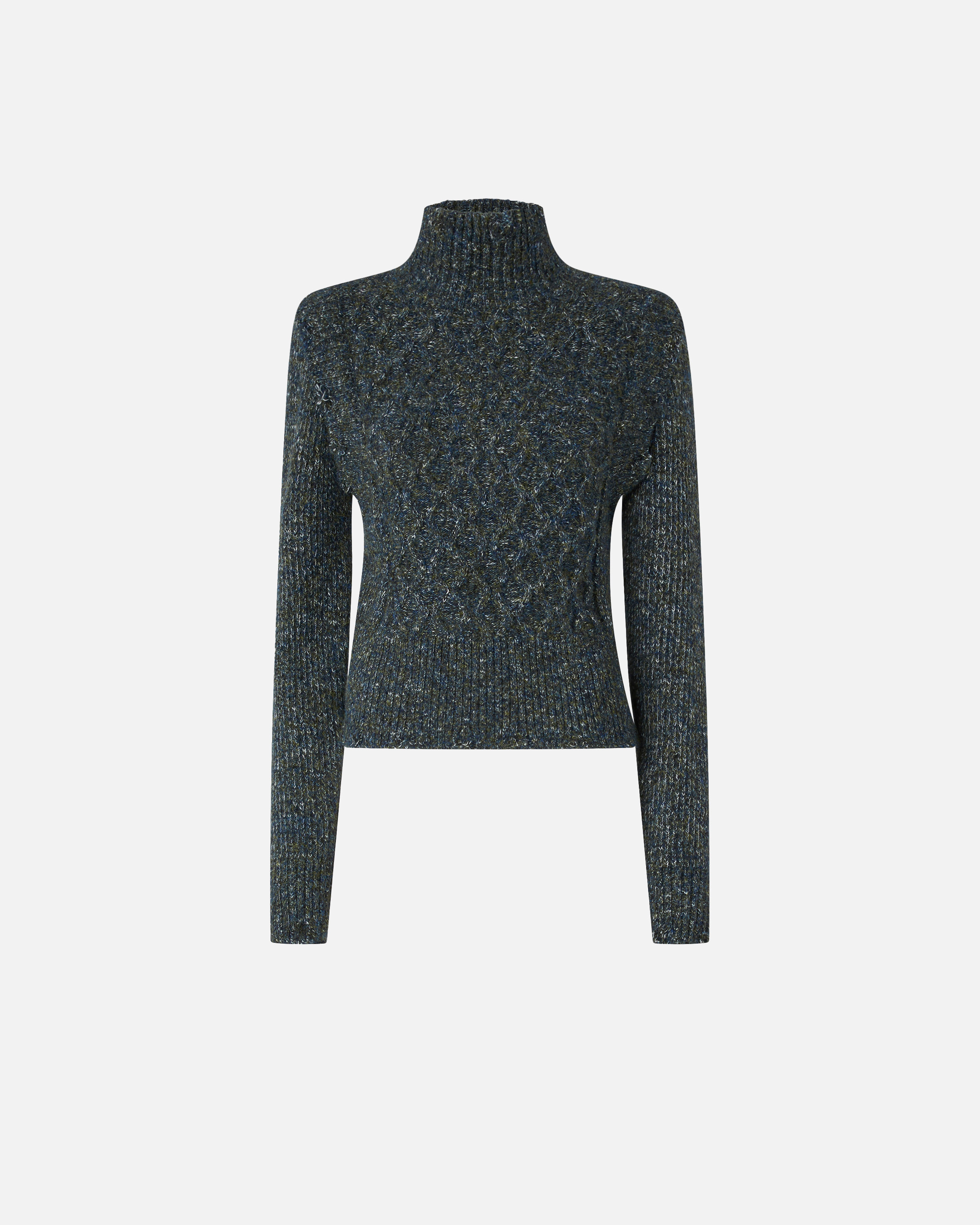 PROUD MARY KNITWEAR − 105968A2YBVGC Turtleneck sweater knit from yarns of different colours, featuring ribbing on the back and sleeves and cable stitching on the front that gives the design movement and a three-dimensional feel. This piece, finished with a label bearing the PINKO logo lettering on the back, is perfect to wear with the matching skirt to create a complete winter look with an innovative, modern vibe. The piece has undergone finishing tests to minimise the possible formation of pilling, ensuring greater fabric softness and durability. COMPOSITION Outer Yarn: POLYESTER 85% ACRYLIC 13% ELASTANE 2%