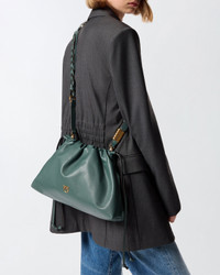 105825A0QO-X14Q Large clutch bag in soft leather with elongated, deconstructed shape and drawstring closure. This piece features two adjustable leather shoulder straps—one of which is woven to striking effect—suitable for shoulder or hand carry, depending on your needs. The accessory features a cotton drill-lined interior and a zipped slip pocket. The finishing touch is provided by the Love Birds logo plaque symbolising the brand's singular style. Activate your PINKO bag: verify the authenticity of your product and access a personalised experience by scanning the Love Birds embroidery on the back of the bag with your smartphone! COMPOSITION Leather: CALF LEATHER 100% CALFSKIN LEATHER 100% - Outside Fabric: POLYURETHANE 70% POLYESTER 30% - Internal: COTTON 100% - Accessory: Zinc 100% MEASURES W: 0.6 g H: 24.0 cm W: 8.0 cm L: 36.0 cm