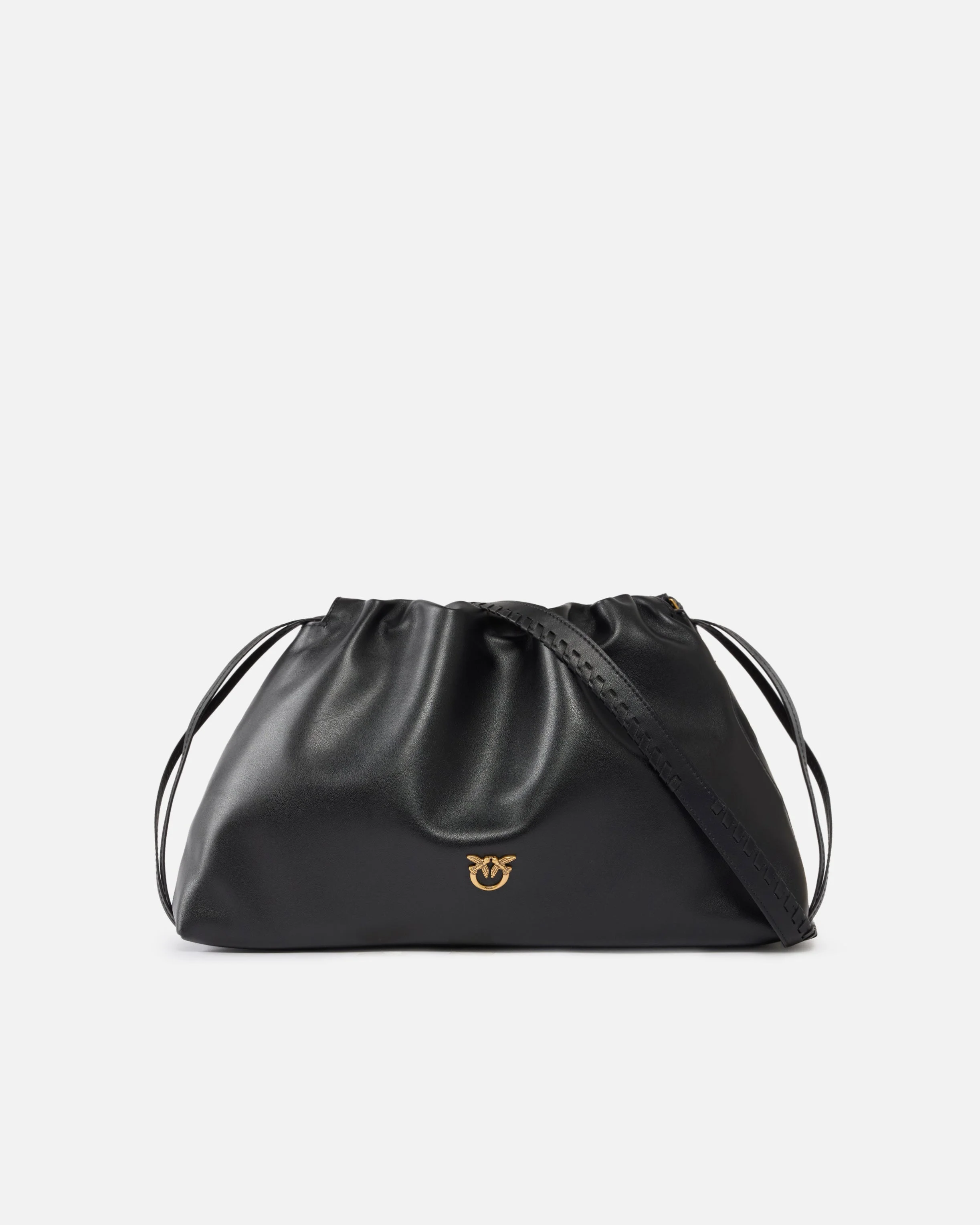 105825A0QO-Z99Q Large clutch bag in soft leather with elongated, deconstructed shape and drawstring closure. This piece features two adjustable leather shoulder straps—one of which is woven to striking effect—suitable for shoulder or hand carry, depending on your needs. The accessory features a cotton drill-lined interior and a zipped slip pocket. The finishing touch is provided by the Love Birds logo plaque symbolising the brand's singular style. Activate your PINKO bag: verify the authenticity of your product and access a personalised experience by scanning the Love Birds embroidery on the back of the bag with your smartphone! COMPOSITION Leather: CALF LEATHER 100% CALFSKIN LEATHER 100% - Outside Fabric: POLYURETHANE 70% POLYESTER 30% - Internal: COTTON 100% - Accessory: Zinc 100% MEASURES W: 0.6 g H: 24.0 cm W: 8.0 cm L: 36.0 cm