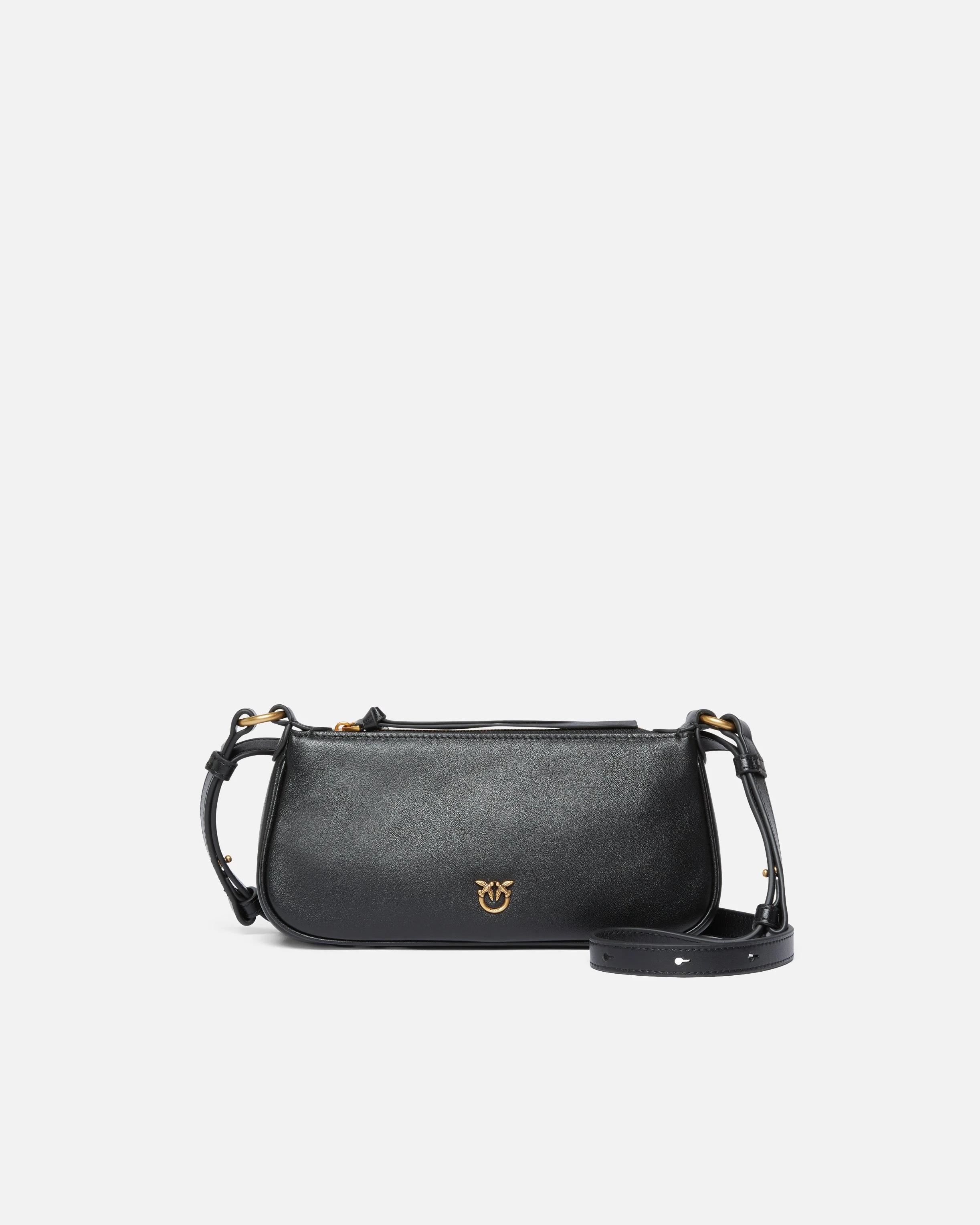 105069A0QO-Z99Q Mini Half Moon bag with a distinctive narrow and elongated rectangular shape, made from soft leather and equipped with a main zip fastening to keep your essentials safe. Featuring an adjustable leather shoulder strap, the bag is extremely versatile and practical for everyday life. The refined design is complemented by the Love Birds logo, which embodies the inimitable style of the brand. Activate your PINKO bag: verify the authenticity of your product and access a personalised experience by scanning the Love Birds embroidery on the back of the bag with your smartphone! COMPOSITION Leather: COWHIDE 100% BOVINE SKIN 100% - Outside Fabric: POLYURETHANE 70% POLYESTER 30% - Internal: COTTON 100% - Accessory: Zinc 100% MEASURES W: 0.3 g H: 11.0 cm W: 5.0 cm L: 23.0 cm