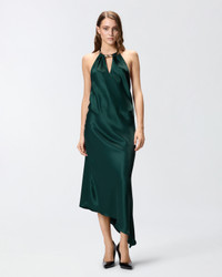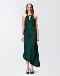 CRUCIMASTER DRESS − 105632A2RAV88 Long, slim-fit, sleeveless dress that is made unique with an asymmetrical hem, embellished with metal spheres on the halterneck. A touch of sensuality is provided by the bared back, which is caressed by the draped detailing on the neck that falls free, creating movement. The shiny satin gives the piece unique shimmer and a particularly soft hand. Wear this design for a fluid, slinky effect that elegantly enhances the lines with sophistication and the feminine silhouette. COMPOSITION Outside Fabric: ACETATE 91% POLYESTER 9% - Lining: POLYESTER 100% - Accessory 1: POLYAMMIDE 100% POLYAMIDE 100% - Accessory 2: Metal 100%