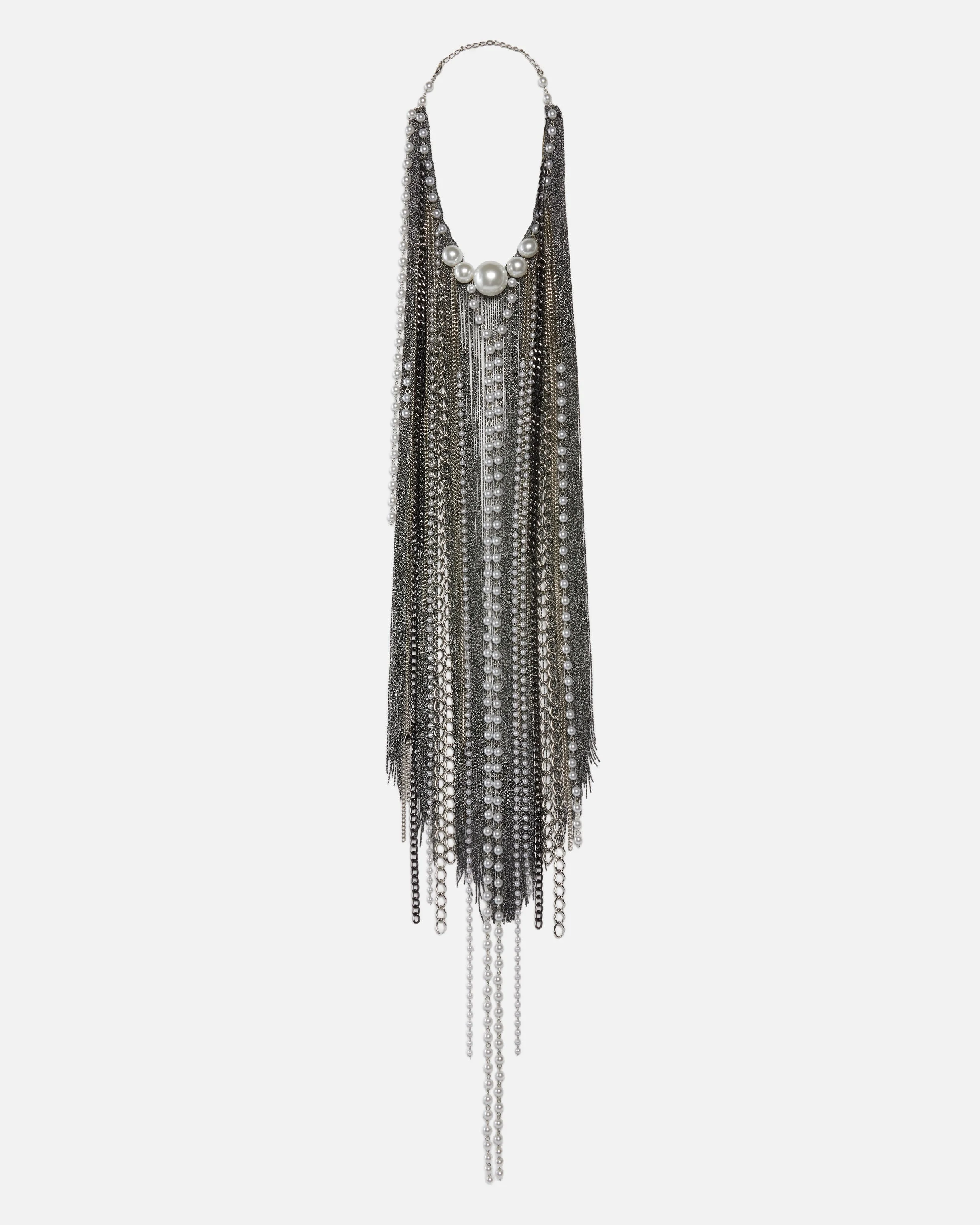 105884A2XB-IZD Multi-thread necklace with cascading pearls and thin, shiny-finish metal chains that create a long-fringe effect. This accessory has an adjustable closure to adapt to different lengths and styling options. COMPOSITION : ACETATE 100% - : POLYESTER 100% - : aluminium 100% Aluminium 100% - : Brass 100% brass 100% MEASURES W: 0.43 g H: 20.0 cm W: 0.2 cm L: 20.0 cm