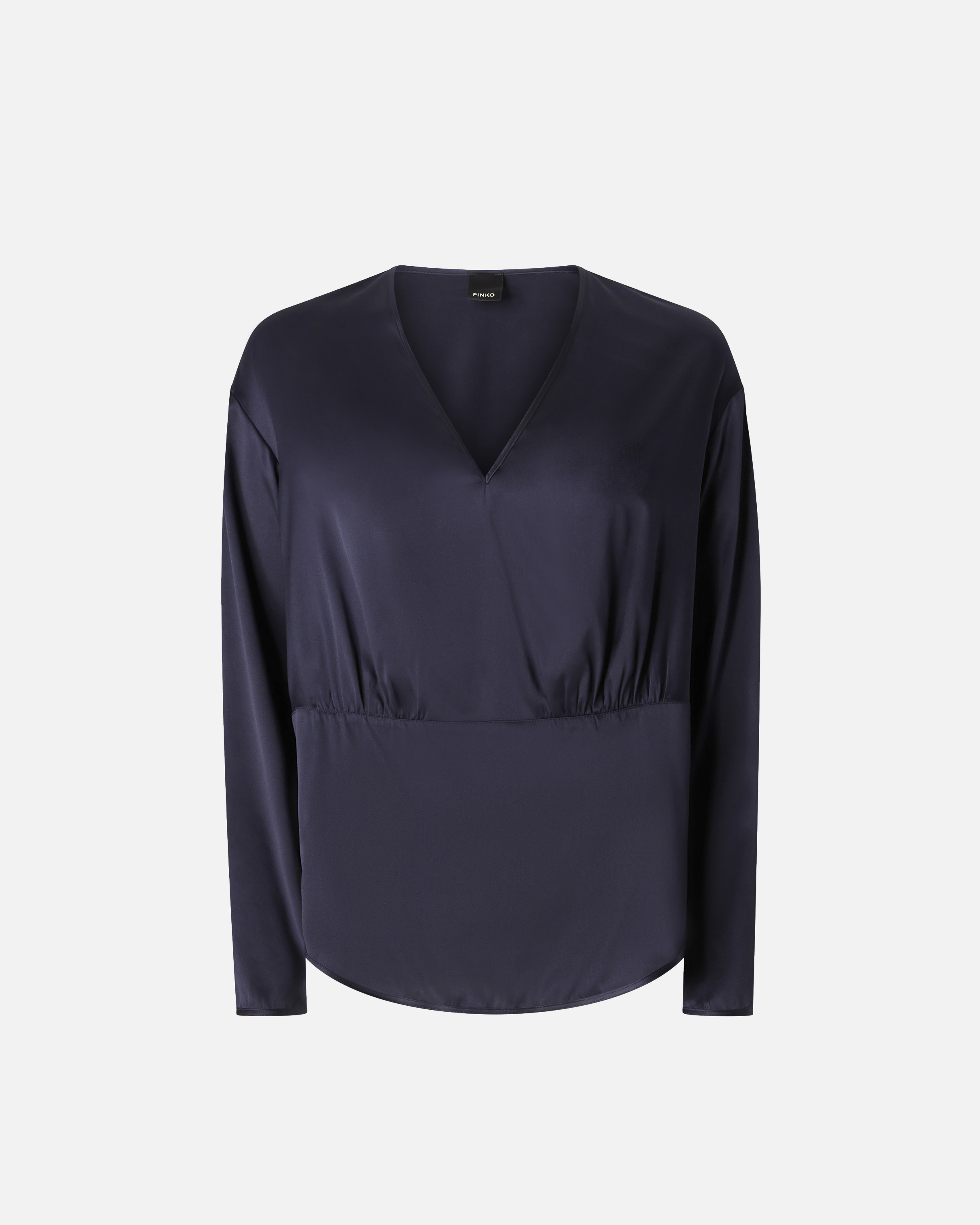 FRISELLA BLOUSE − 105699A2JRGA3 Flowing blouse in stretch silk satin. The design is distinguished by the V-neck, the rounded hem, the long sleeves with dropped shoulders and the front panel that creates slight gathering. Elegant, versatile and perfect at all times, this feminine blouse can be worn for any occasion, from days when you're on the go—teamed with a pair of jeans—to special evenings where it becomes the star of a stylishly put-together outfit. COMPOSITION Outside Fabric: SILK 96% ELASTANE 4%