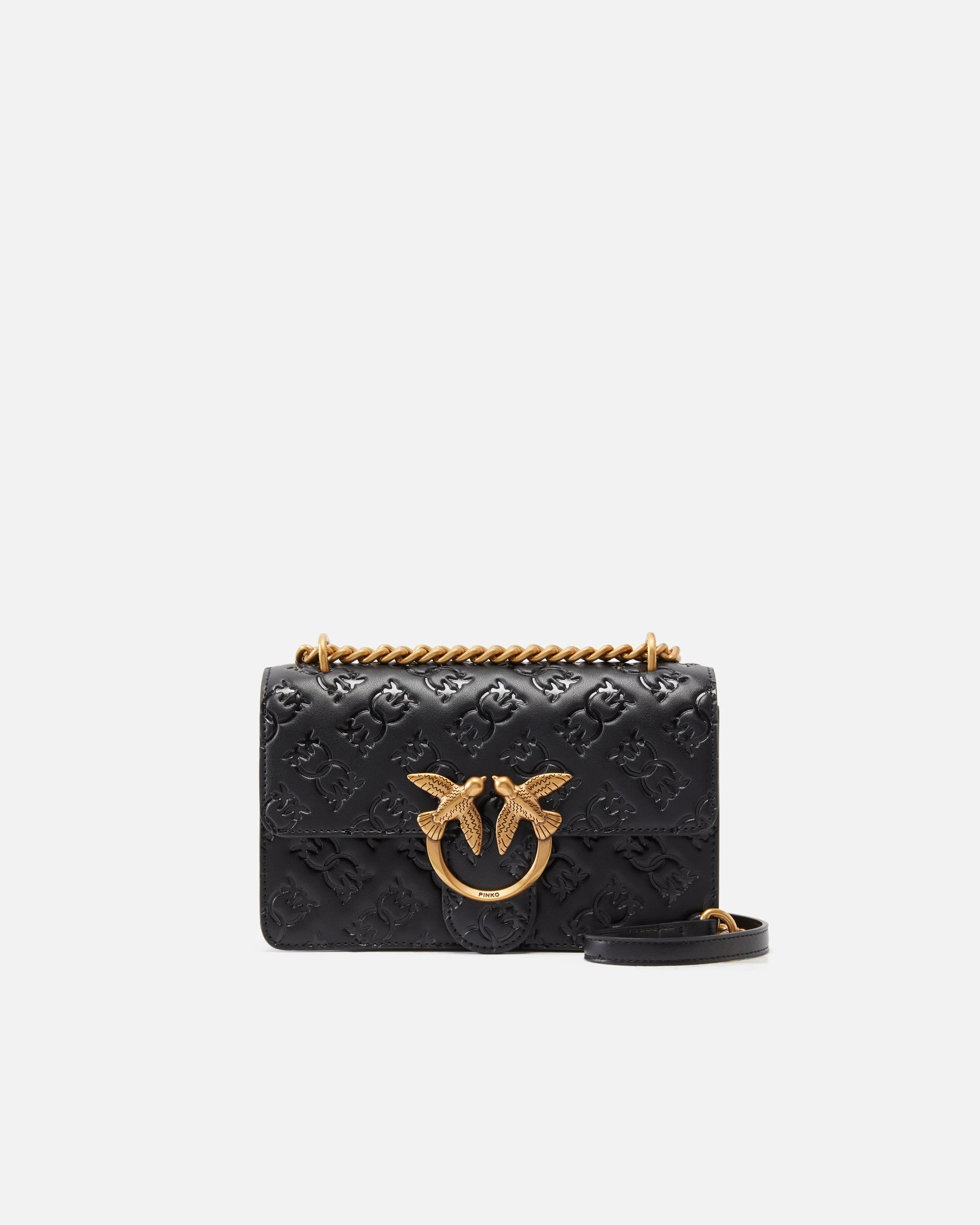 100074A1YB-Z99Q Love Bag mini crossbody bag in soft, silky leather with imprime Love Birds Monogram motif and antique gold-electroplated Love Birds Diamond Cut buckle. Inside, it has suede lining, a leather slip pocket and a zipped centre divider pocket. The bag is complete with a shoulder strap combining a metal chain and adjustable leather shoulder pad. Activate your PINKO bag: verify the authenticity of your product and access a personalised experience by scanning the Love Birds embroidery on the back of the bag with your smartphone! COMPOSITION Leather: COWHIDE 100% BOVINE SKIN 100% - Outside Fabric: POLYAMMIDE 100% POLYAMIDE 100% - coating: POLYURETHANE 100% - Lining: COTTON 100% MEASURES W: 0.57 g H: 12.0 cm W: 6.0 cm L: 21.0 cm