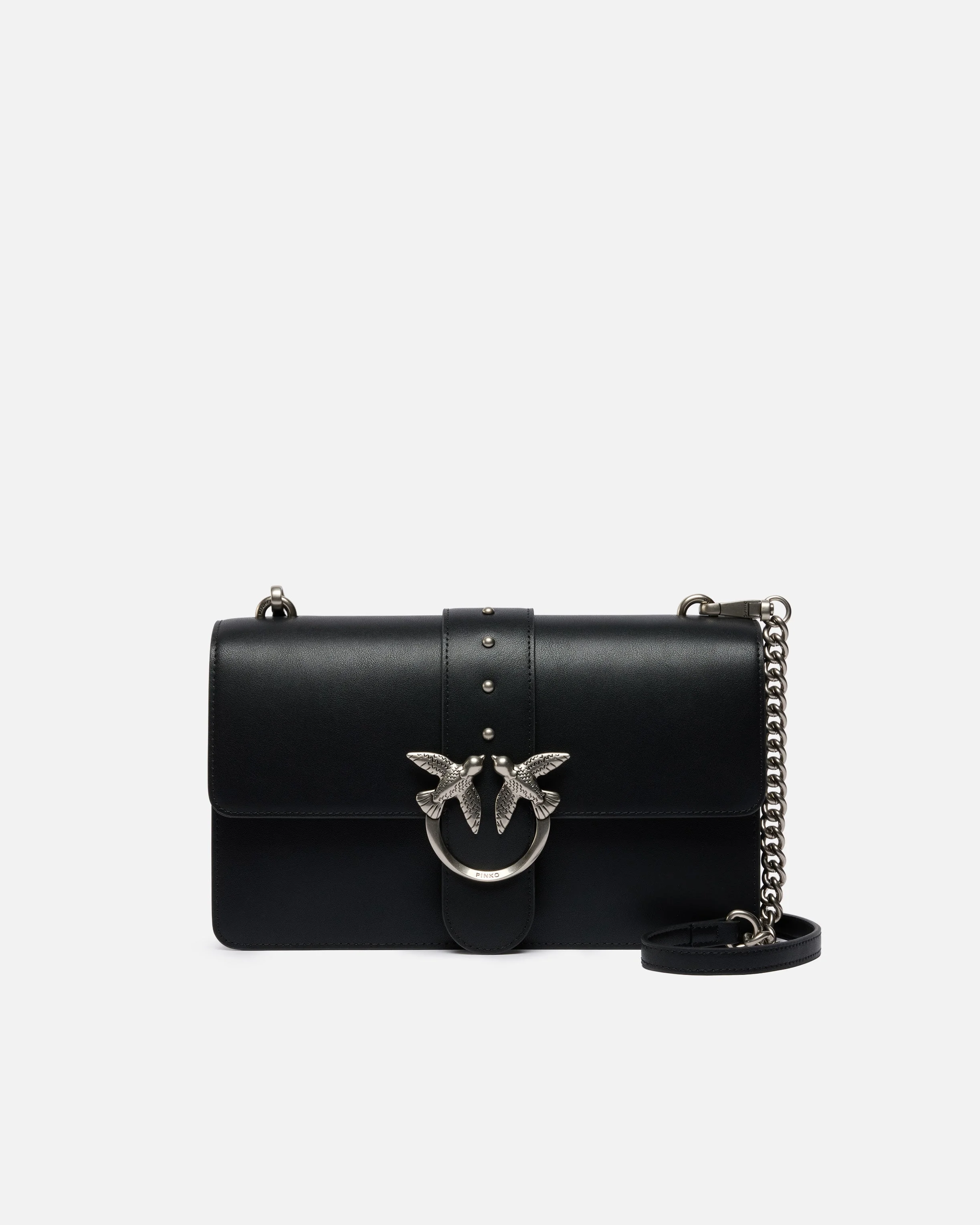 105857A0F1-Z99O Love Bag One medium handbag in silky leather. Featuring an adjustable and removable leather and chain shoulder strap, this piece is very versatile and practical. The strap fastening with magnetic button is accompanied by a buckle with the Love Birds Diamond Cut logo and small metal studs. The cotton-lined interior features a zipped pocket to keep your essentials safe. Activate your PINKO bag: verify the authenticity of your product and access a personalised experience by scanning the Love Birds embroidery on the back of the bag with your smartphone! COMPOSITION Outside Fabric: COWHIDE 92% BOVINE SKIN 92% POLYURETHANE 8% - 1° Outside Fabric: POLYAMMIDE 50% POLYAMIDE 50% POLYURETHANE 50% - Lining: COTTON 100% MEASURES W: 0.74 g H: 15.0 cm W: 7.0 cm L: 27.0 cm