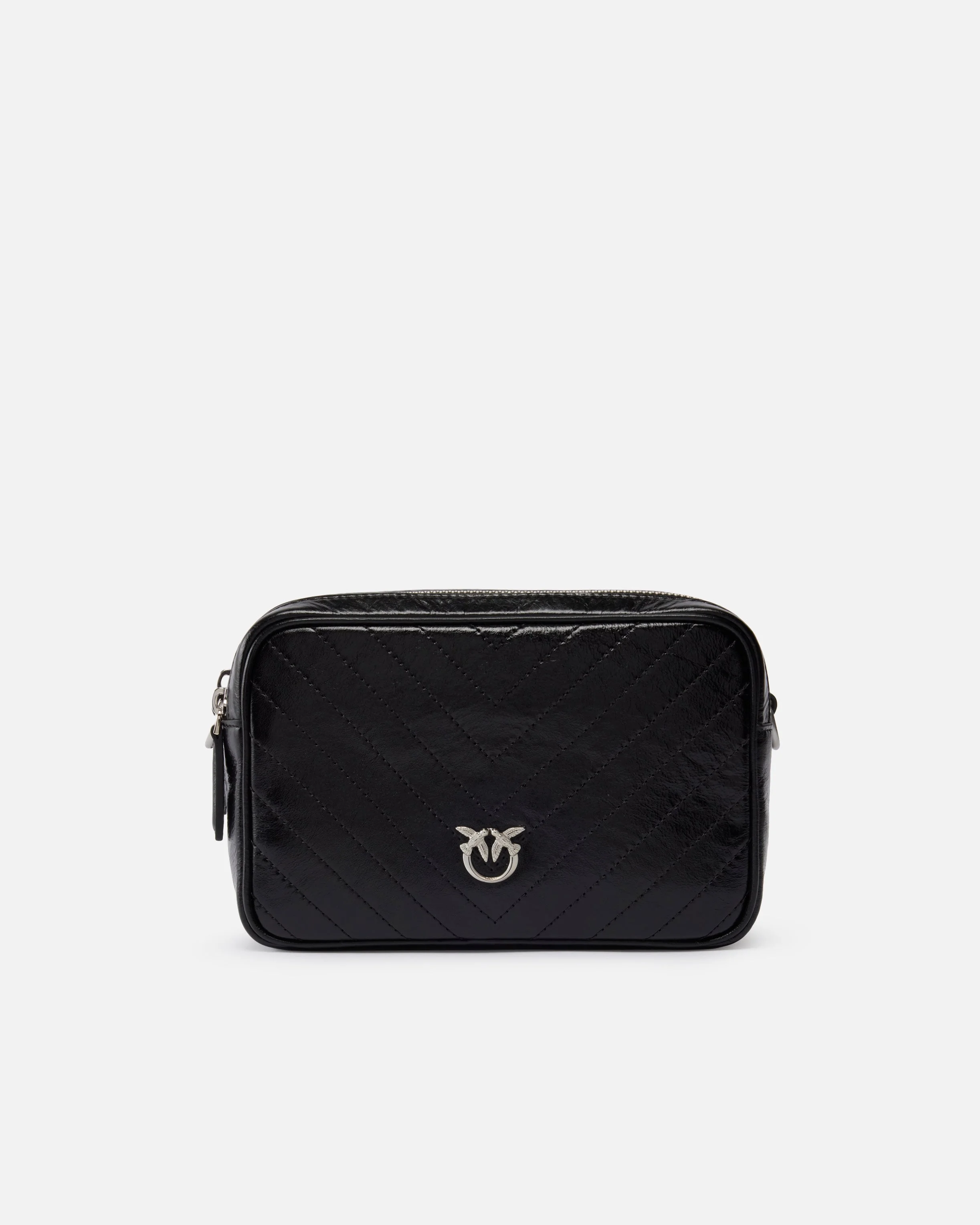 104336A2JC-Z99E Medium cotton camera bag made from slightly gathered, wrinkled leather with chevron-patterned quilting. Featuring an adjustable leather shoulder strap so it can be carried by hand or on the shoulder, the bag is extremely versatile and practical. A distinctive accessory that is perfect for endless looks, this bag has a double zip and inner pockets to keep your essentials safe. The refined design is complemented by the Love Birds logo, which embodies the inimitable style of the brand. Activate your PINKO bag: verify the authenticity of your product and access a personalised experience by scanning the Love Birds embroidery on the back of the bag with your smartphone! COMPOSITION Lining: COTTON 100% - Leather: COWHIDE 100% BOVINE SKIN 100% MEASURES W: 0.51 g H: 13.0 cm W: 8.5 cm L: 20.5 cm