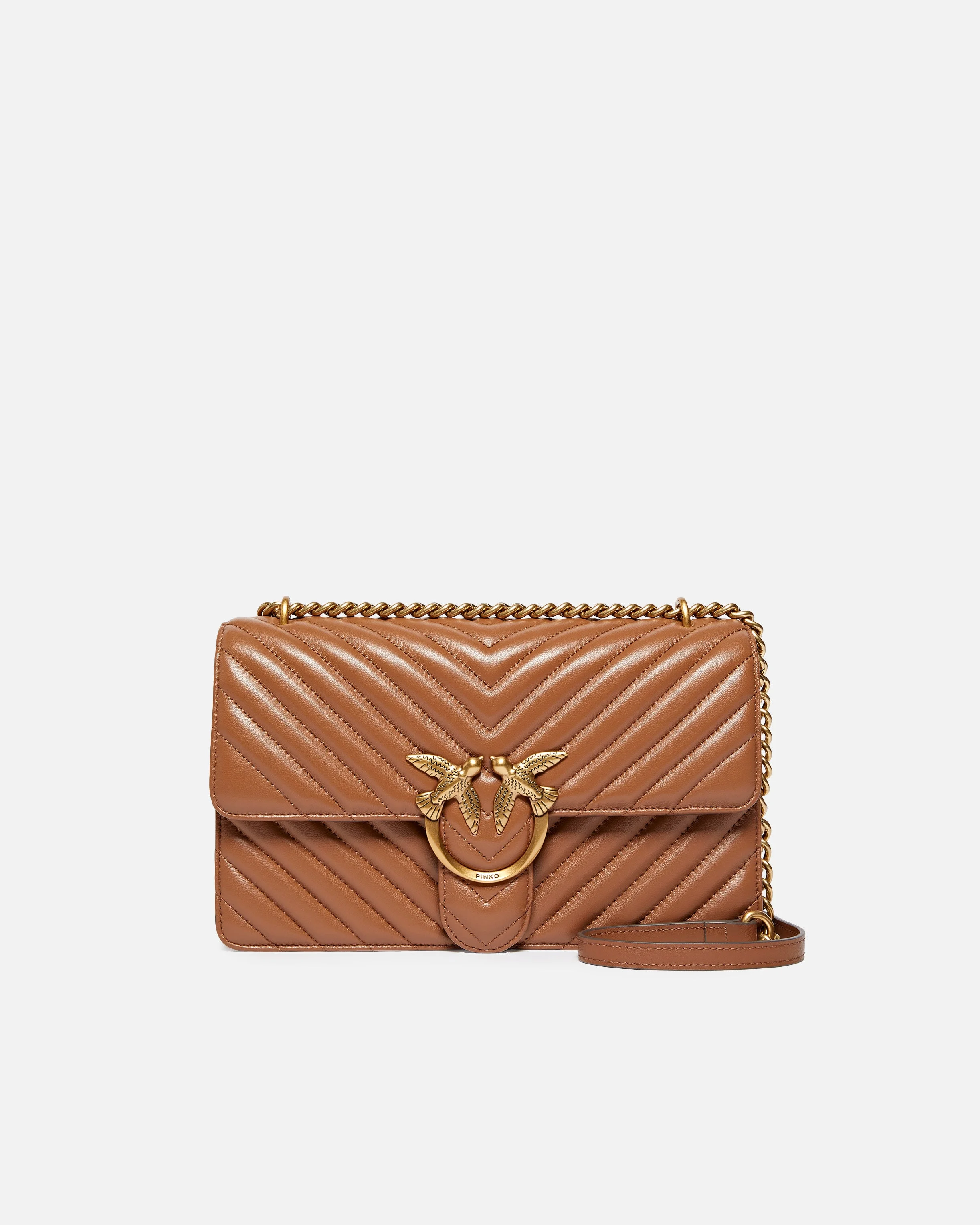 100941A0GK-L17Q Classic Love Bag One in quilted nappa leather with chevron pattern. The fastening is embellished with the iconic metal Love Birds Diamond Cut buckle. The accessory boasts a suede microfibre-lined interior, complete with a zipped centre divider pocket and leather slip pocket. The shoulder strap combines the classic round-link chain with a practical, adjustable leather shoulder pad. COMPOSITION Leather: SHEEP LEATHER 100% SHEEPSKIN LEATHER 100% - Outside Fabric: POLYAMMIDE 50% POLYAMIDE 50% POLYURETHANE 50% - BONDED FABRIC: COWHIDE 92% BOVINE SKIN 92% POLYURETHANE 8% - Lining: COTTON 100% MEASURES W: 0.76 g H: 16.0 cm W: 8.0 cm L: 27.0 cm