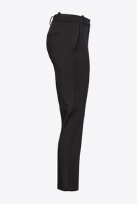 Cigarette trousers in technical, full Milano-knit stretch viscose fabric, with special scuba-effect finish. Pressed crease in the middle of the legs on the front and back, slanted front pockets and welt pockets on the back. Lined. Belt loops on the waist. Small hook-and-eye and zip fastening. COMPOSITION Outside Fabric: VISCOSE 65% POLYAMMIDE 30% POLYAMIDE 30% ELASTANE 5% - Lining: ACETATE 65% POLYESTER 35%