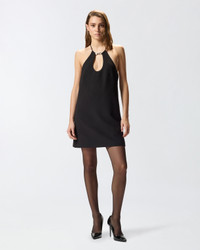 INKOGNITO DRESS − 105602A2R9Z99 Short, flared dress with keyhole neck, back zip and invisible pockets. A touch of sensuality is provided by the bared back, which is caressed by the tie on the neck that falls free, creating movement. The technical viscose fabric manages to combine softness and fluidity to create a sophisticated texture that offers optimal comfort and fit, without losing the structured appearance of the design. The clean, modern lines of the design are embellished by distinctive accents, such as the pearl and metal bejewelled details on the choker. Liven up your special occasions and elegant soirees with this evening dress, designed to make your femininity stand out, especially when paired with high-heeled pumps. COMPOSITION Outside Fabric: POLYESTER 70% VISCOSE 23% ELASTANE 7% - Lining: POLYESTER 100% - Accessory 1: POLYAMMIDE 100% POLYAMIDE 100% - Accessory 2: Metal 100% - Accessory 3: ACRYLIC 100%