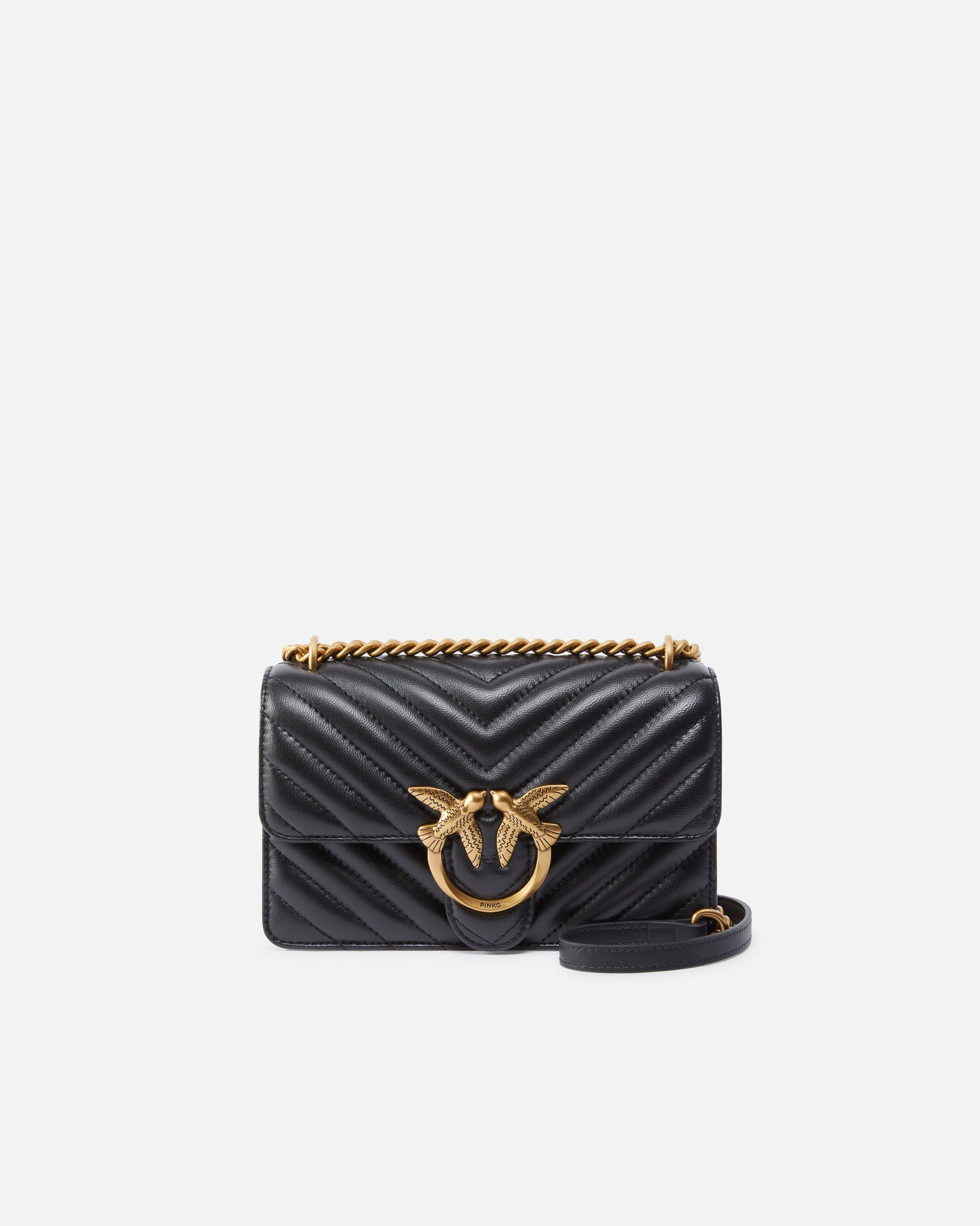 Mini Love Bag One in quilted nappa leather with chevron pattern. The fastening is embellished with the iconic metal Love Birds Diamond Cut buckle. The accessory boasts a microsuede-lined interior, complete with zipped centre divider pocket and leather slip pocket. The shoulder strap combines the classic round-link chain with a practical, adjustable leather shoulder pad. Activate your PINKO bag: verify the authenticity of your product and access a personalised experience by scanning the Love Birds embroidery on the back of the bag with your smartphone! COMPOSITION Lining: POLYAMMIDE 50% POLYAMIDE 50% POLYURETHANE 50% - Leather: SHEEP LEATHER 100% SHEEPSKIN LEATHER 100% - Material: COWHIDE 92% BOVINE SKIN 92% POLYURETHANE 8% - Material 1: POLYAMMIDE 50% POLYAMIDE 50% POLYURETHANE 50% MEASUREMENTS - Height: 12 cm - Width: 7 cm - Length: 21 cm