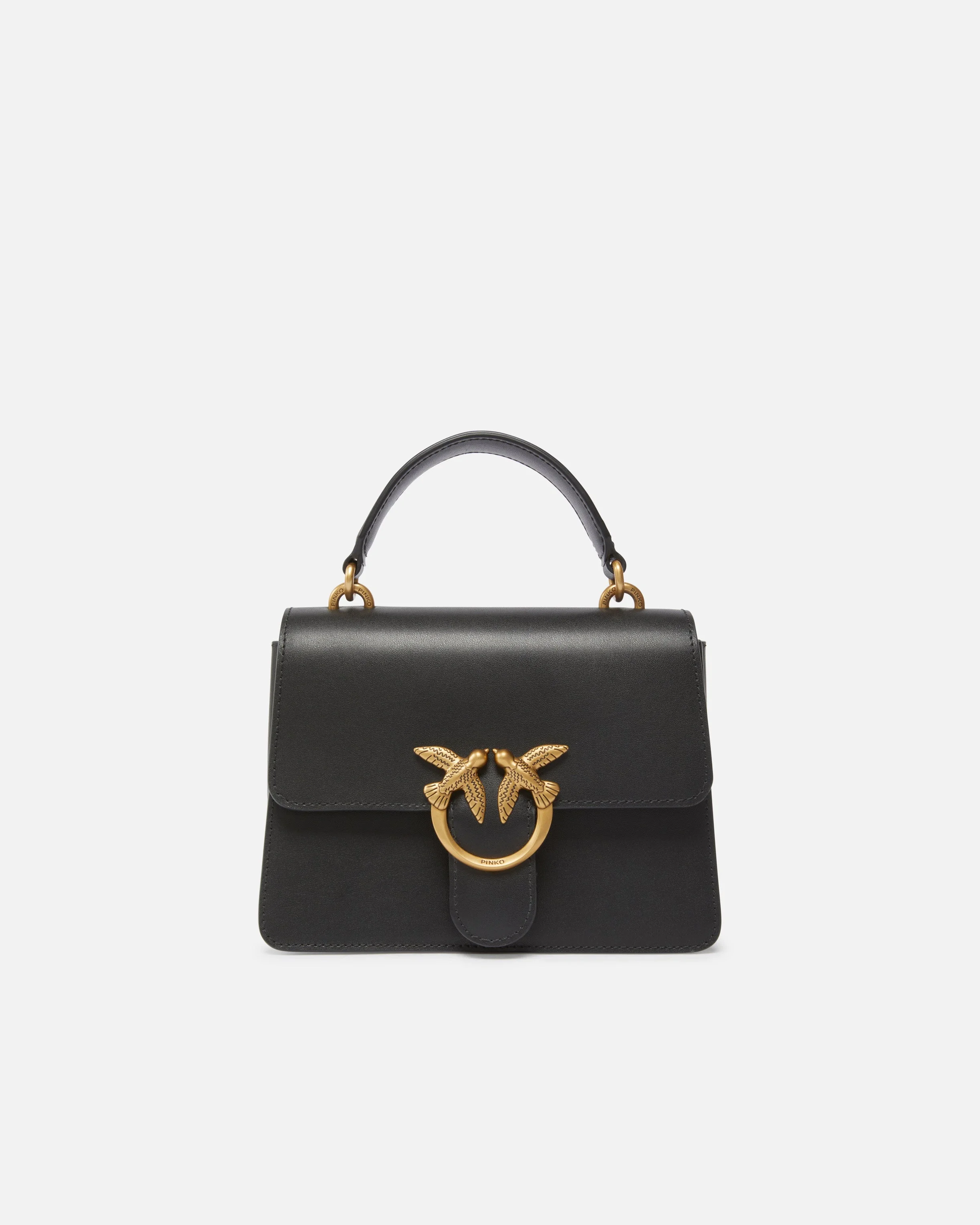 Mini Love Bag One Top Handle Light in soft, silky leather with a light, deconstructed design. The fastening is complete with the iconic metal Love Birds Diamond Cut buckle. The accessory boasts a microsuede-lined interior and a zipped slip pocket. Adjustable and removable leather shoulder strap, and top handle. Activate your PINKO bag: verify the authenticity of your product and access a personalised experience by scanning the Love Birds embroidery on the back of the bag with your smartphone! COMPOSITION Lining: POLYAMMIDE 50% POLYAMIDE 50% POLYURETHANE 50% - Leather: COWHIDE 100% BOVINE SKIN 100% - Accessory: Zinc 100% MEASUREMENTS - Height: 15 cm - Width: 9 cm - Length: 20 cm