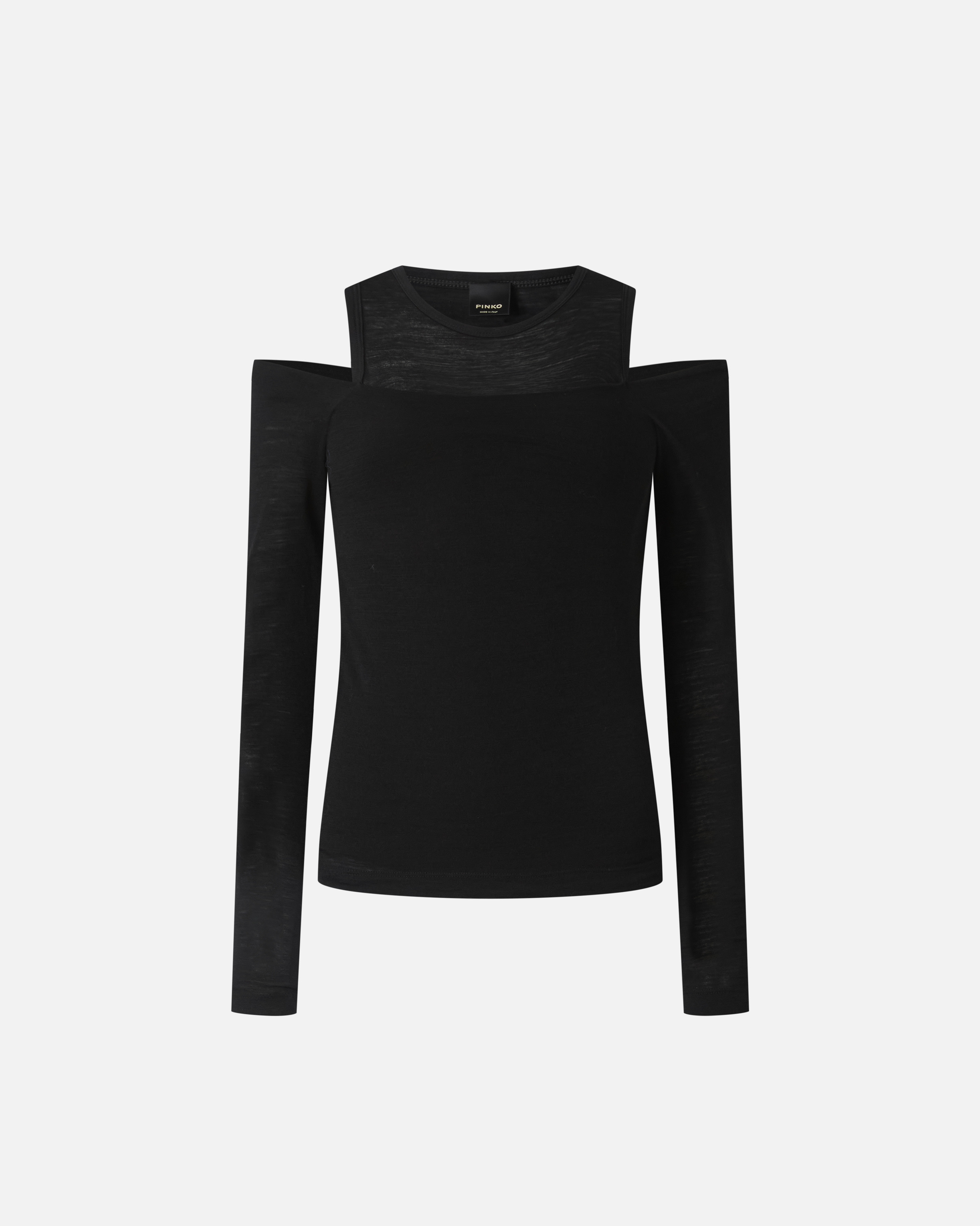 GUADALUPE KNITWEAR − 106150A30IZ99 Contemporary crewneck sweater with a bold and feminine design, made of soft wool-blend jersey. The distinctive detail is the elegant cut-out openings on the shoulders that create a trendy shoulder-off effect, maintaining the coverage of the long sleeves for a sophisticated and balanced look. The slim silhouette adheres perfectly to the figure, enhancing the shapes. The classic crew neck balances the boldness of the side cuts, creating a versatile garment that adapts to different occasions. Pair it with palazzo pants and heels for a chic aperitif or wear it with skinny jeans and ankle boots for a casual-glam look perfect for leisure time. COMPOSITION Outside Fabric: WOOL 80% POLYAMIDE 20% POLYAMMIDE 20%