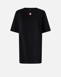MIGLIO KNITWEAR − 105744A2IBZ99 Long, half-sleeved T-shirt in cotton jersey, with a rib-knit crew-neck. The front features heart embroidery with the PINKO logo, while the back is embellished with a shiny embossed print with the slogan "WE ARE ON the HIGH SEAS!", accompanied by the PINKO logo as always. This T-shirt can be worn with a pair of jeans for a casual look or with elegant-cut trousers for a casual and feminine touch. COMPOSITION 1° Outside Fabric: COTTON 100% - 2° Outside Fabric: COTTON 100%