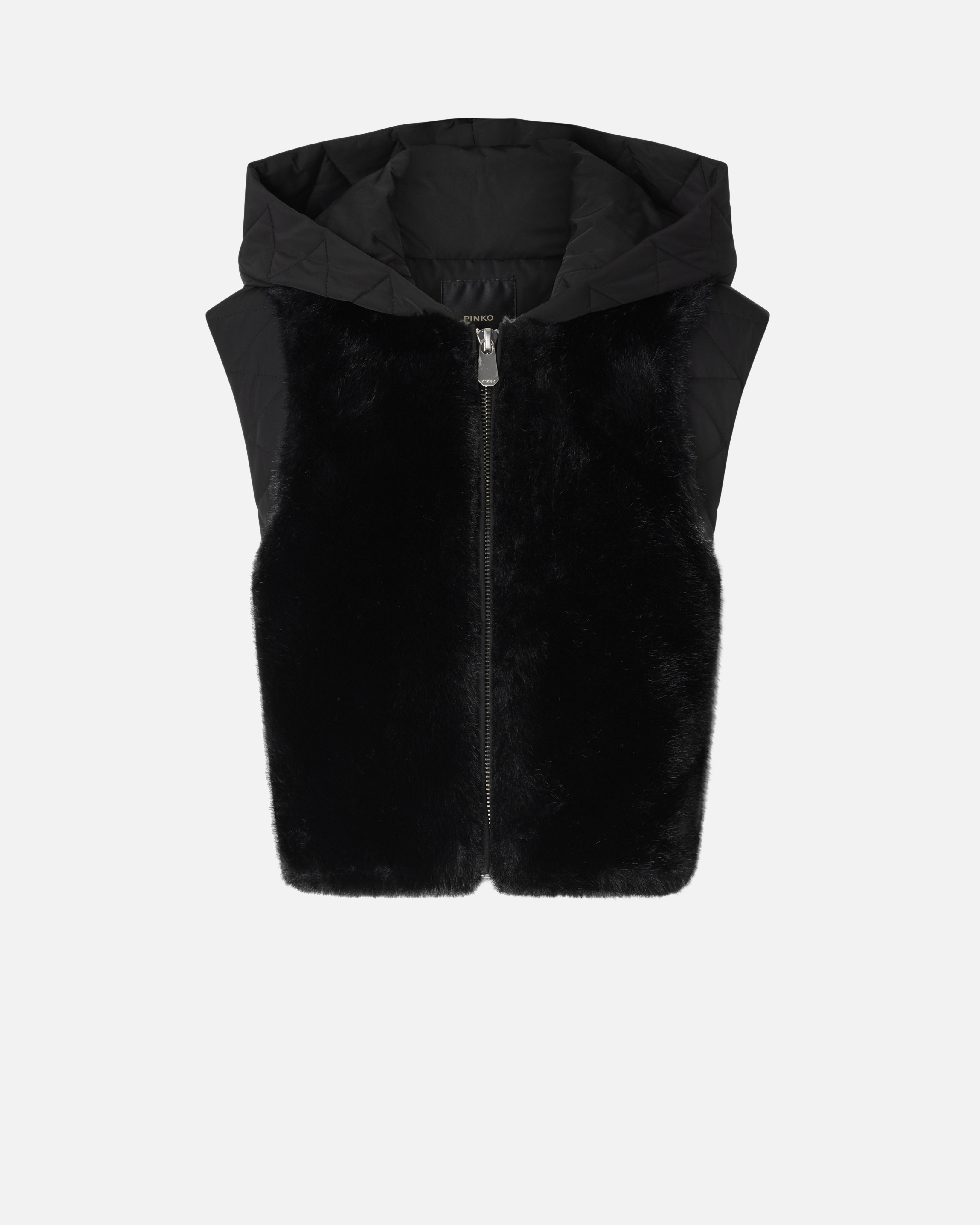 OLIO GILET − 105373A2P3Z99 Padded cropped gilet, made from soft faux fur Aspen fabric and finished with a hood and technical canvas trims. The piece perfectly blends two different materials that here intermingle to present a combination of softness and technicality for a garment that can be used at the beginning of the season. This outerwear is ideal for wearing on cooler early-season days in the open air with maximum comfort without sacrificing a touch of style. COMPOSITION 1° Outside Fabric: POLYESTER 100% - 2° Outside Fabric: POLYESTER 100% - Lining: POLYESTER 100% - Padding: POLYESTER 100%