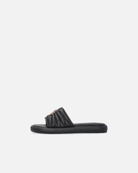 SD0525P003-Z99 Slip-on sandals made of soft nappa leather, featuring a thick padded and quilted upper band with a metal plaque in the centre depicting the iconic Love Birds Diamond Cut logo, the emblem of the PINKO DNA. The design has an ergonomic rubber sole with a chunky yet balanced profile, and is complete with a leather insole for greater comfort when worn. A reinterpretation of the classic slip-on sandal in an urban and contemporary version, the model is also perfect for completing your city looks. - FIONA 03 COMPOSITION Lining: CALF LEATHER 100% CALFSKIN LEATHER 100% - Upper: SHEEP LEATHER 100% SHEEPSKIN LEATHER 100% - Sole: CALF LEATHER 100% CALFSKIN LEATHER 100% - Sole: ELASTODIENE 100% RUBBER 100% MEASURES W: 0.95 g