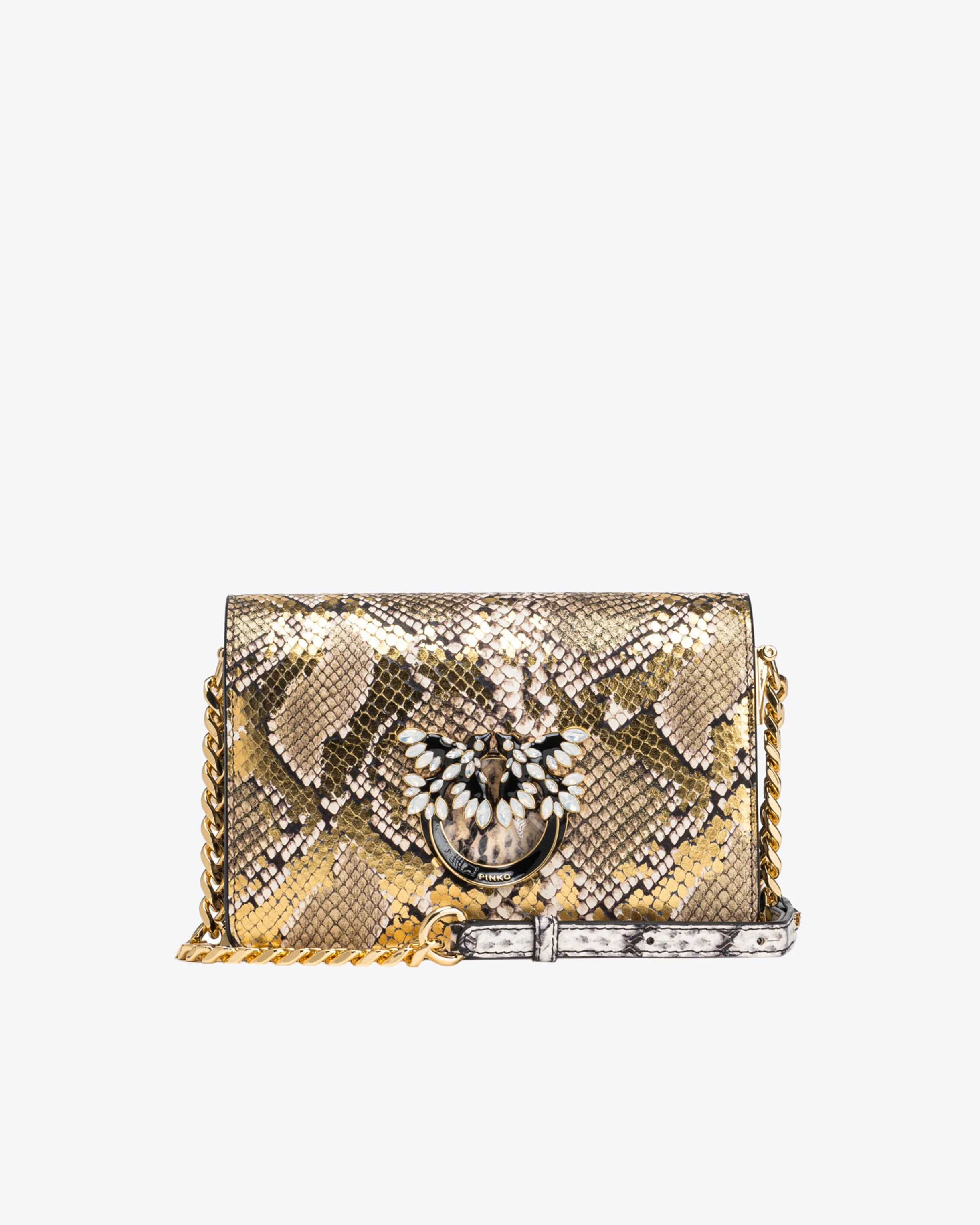 PINKO GALLERIA MINI LOVE BAG CLICK IN LAMINATED REPTILE SKIN
