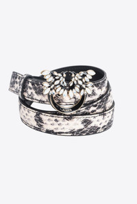 PINKO GALLERIA THIN 2CM REPTILE-PRINT BELT WITH LOVE BIRDS BUCKLE