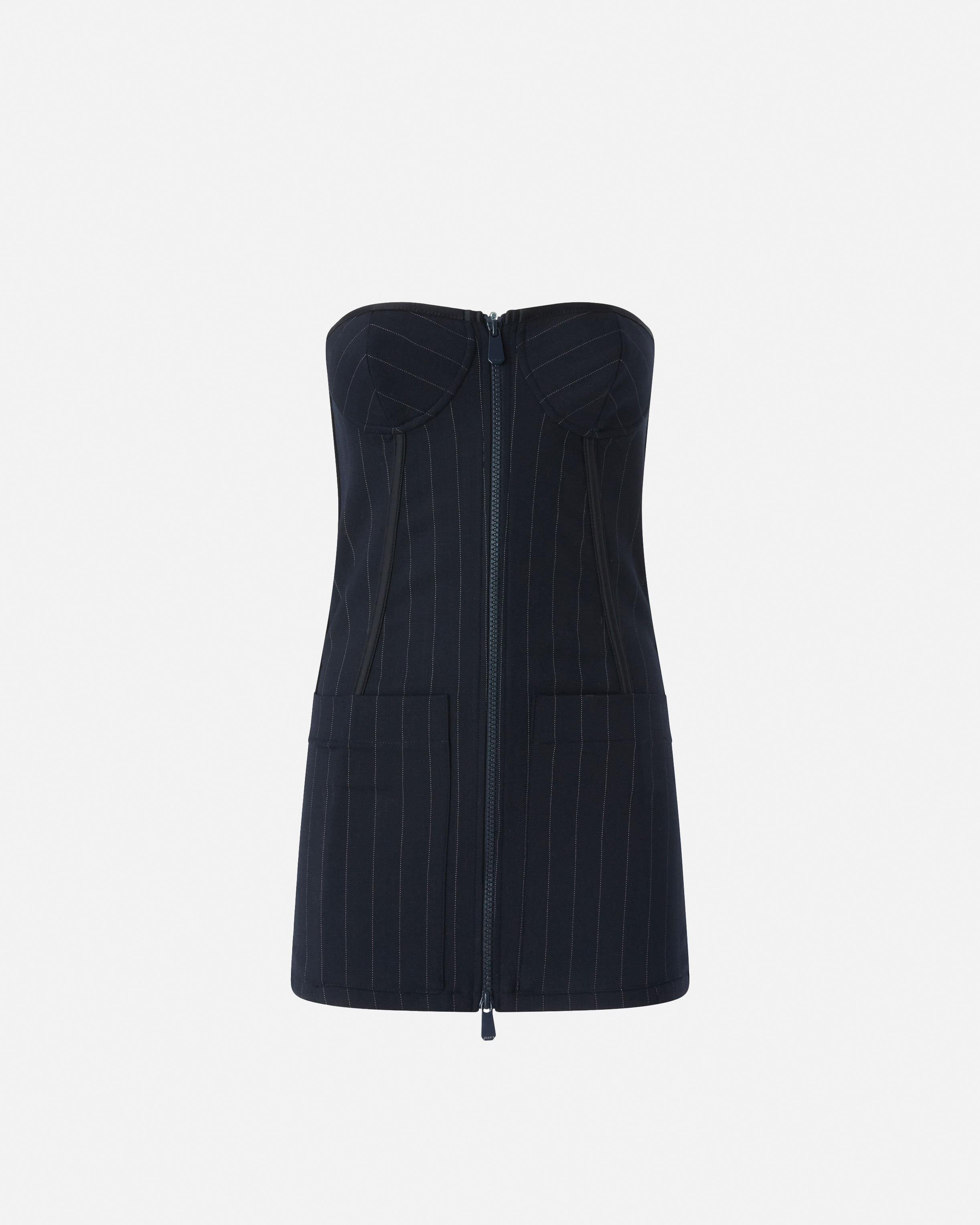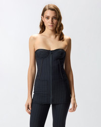 PINSTRIPE POLY WOOL BUSTIER TOP