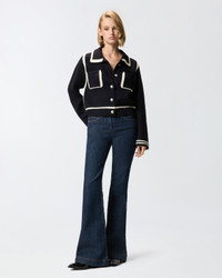 SULCIS JACKET − 105498A2PLEZ1 Preppy-style cardigan in fine and soft merino wool. The design features a contrasting yarn that highlights the cuffs, yoke, hem, collar and front pockets. The final touch is given by the tone-on-tone label with PINKO lettering logo behind the neck. The piece has undergone finishing tests to minimise the possible formation of pilling, ensuring greater fabric softness and durability. Front fastening with star-decorated metal buttons. Practical, original and on-trend: this style is destined to become the real ace up your sleeve in your wardrobe. COMPOSITION Outer Yarn: WOOL 100%