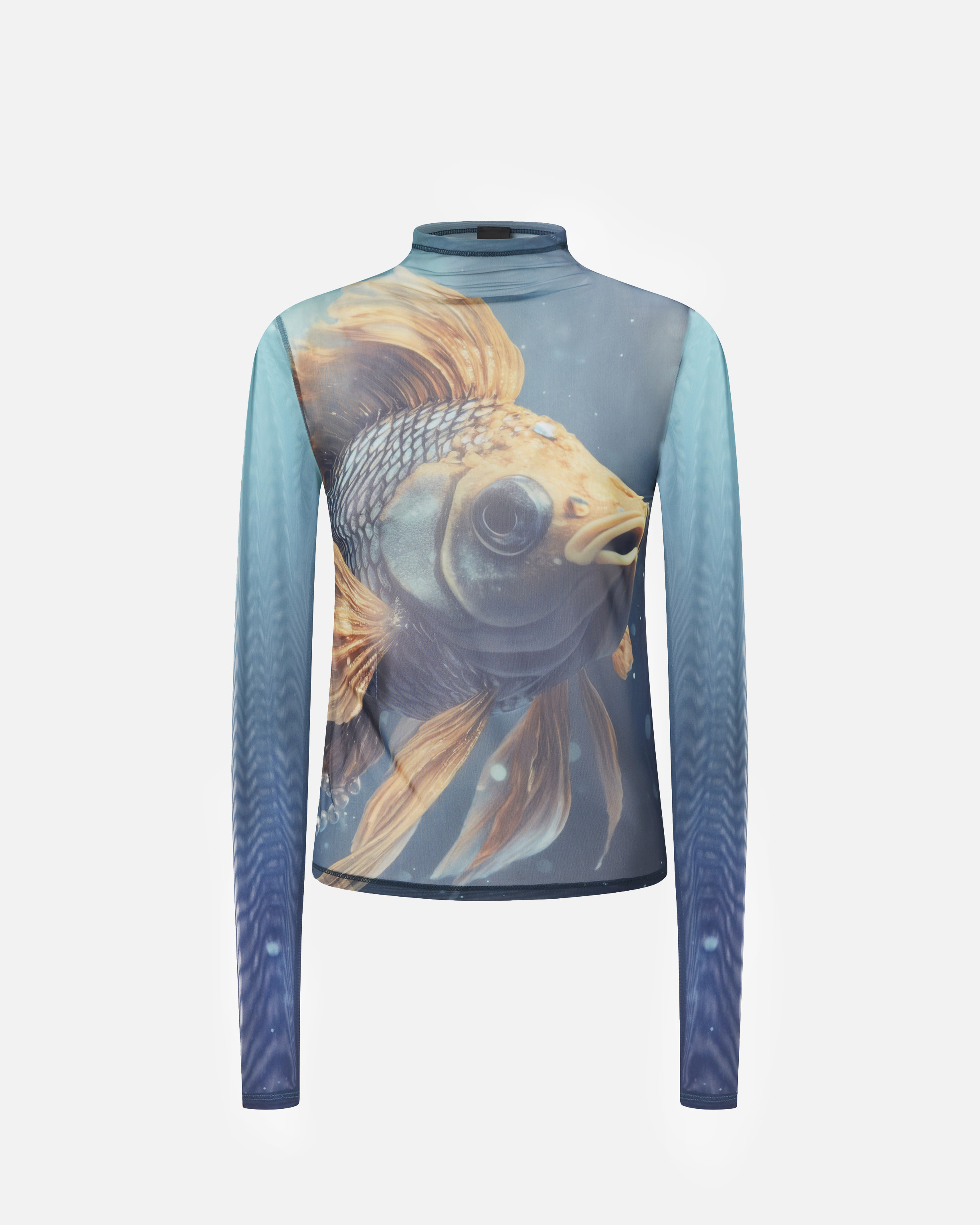 MOSTARDA KNITWEAR − 105798A2VMSH4 This tulle sweater features a slim-fit line with long sleeves and a mock polo-neck. The run-resistant mesh is a very durable fabric that has undergone special treatment to prevent the stitching from unravelling when torn. The placed print that adorns the piece, on the other hand, is inspired by the sailing world and attests to PINKO's skill with different fabrics and complex manufacturing techniques. Make any outfit extra elegant and feminine with this top, which is perfect to wear under a jacket, paired with either tailored trousers or even a pair of special jeans. COMPOSITION Outside Fabric: POLYAMIDE 80% POLYAMMIDE 80% ELASTANE 20%