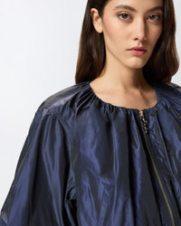 DOMINO BOMBER − 105455Y3LEG41 Cropped taffeta bomber jacket with a regular fit, featuring a zip, short puff sleeves that lengthen to three quarters and a stretch hem. The light and glossy fabric creates shimmer and goes perfectly with the soft, dynamic volume that distinguishes the piece. The meticulous cuts and contemporary lines of this elegant piece of outerwear are embellished by distinctive details, such as the gathering on the neck. COMPOSITION Outside Fabric: POLYESTER 100% - Lining: POLYESTER 100%