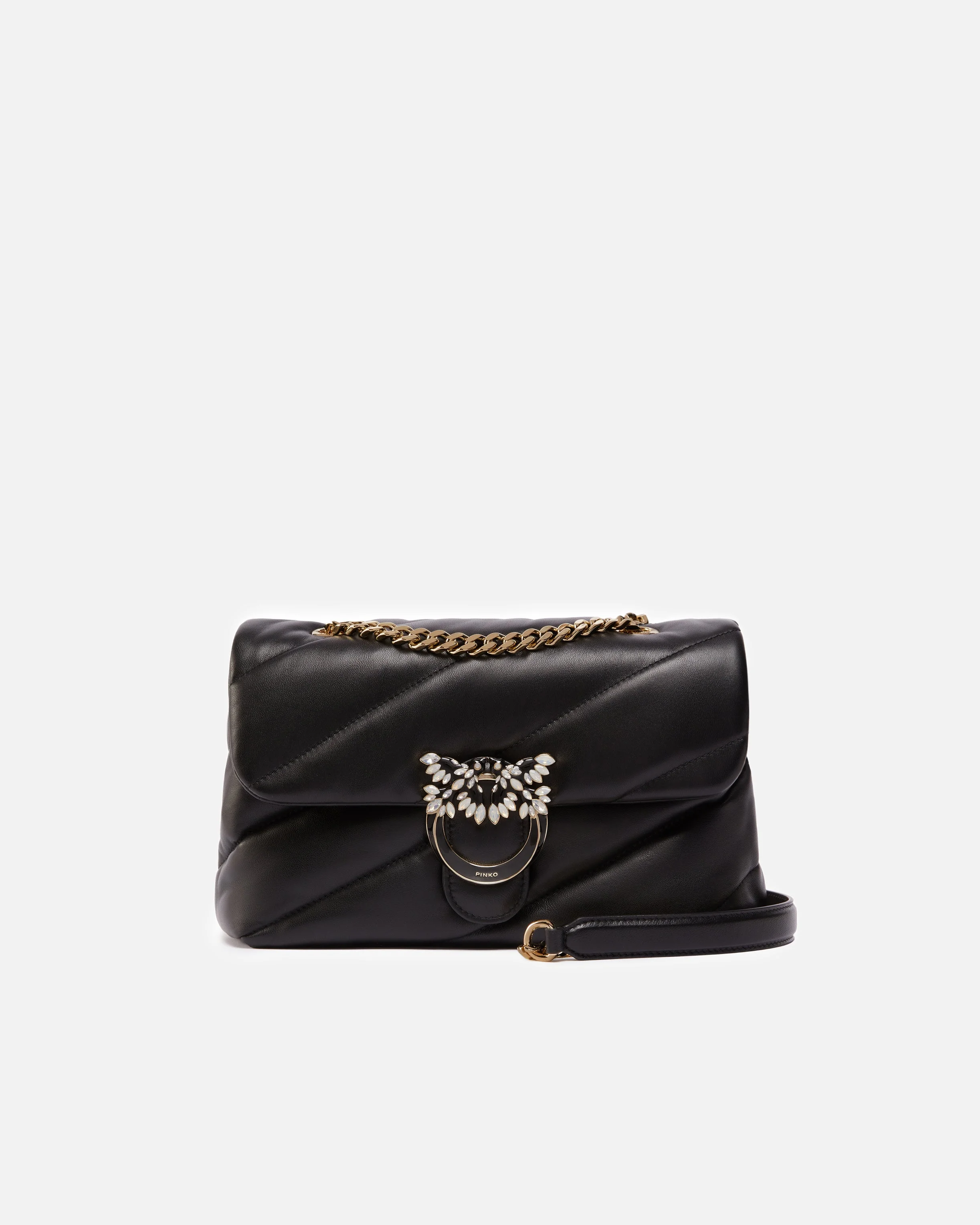 QUILTED LOVE BAG PUFF SHOULDER BAG WITH JEWEL BUCKLE PINKO GALLERIA