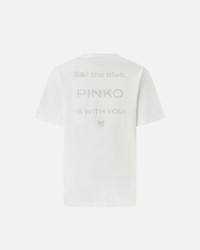 STREPITOSO T-SHIRT − 105526A2S1Z05 Pure cotton jersey T-shirt with round neck and short sleeves. The piece features shiny rhinestones that cover both the PINKO lettering logo on the front and the lettering on the back with the slogan "Sail the blue PINKO IS WITH YOU" and our must-have Love Birds logo. This T-shirt will work seamlessly with your favourite trousers, elevating your look in a simple, elegant and original way. COMPOSITION 1° Outside Fabric: COTTON 100% - 2° Outside Fabric: COTTON 95% ELASTANE 5% - : aluminium 100% Aluminium 100%