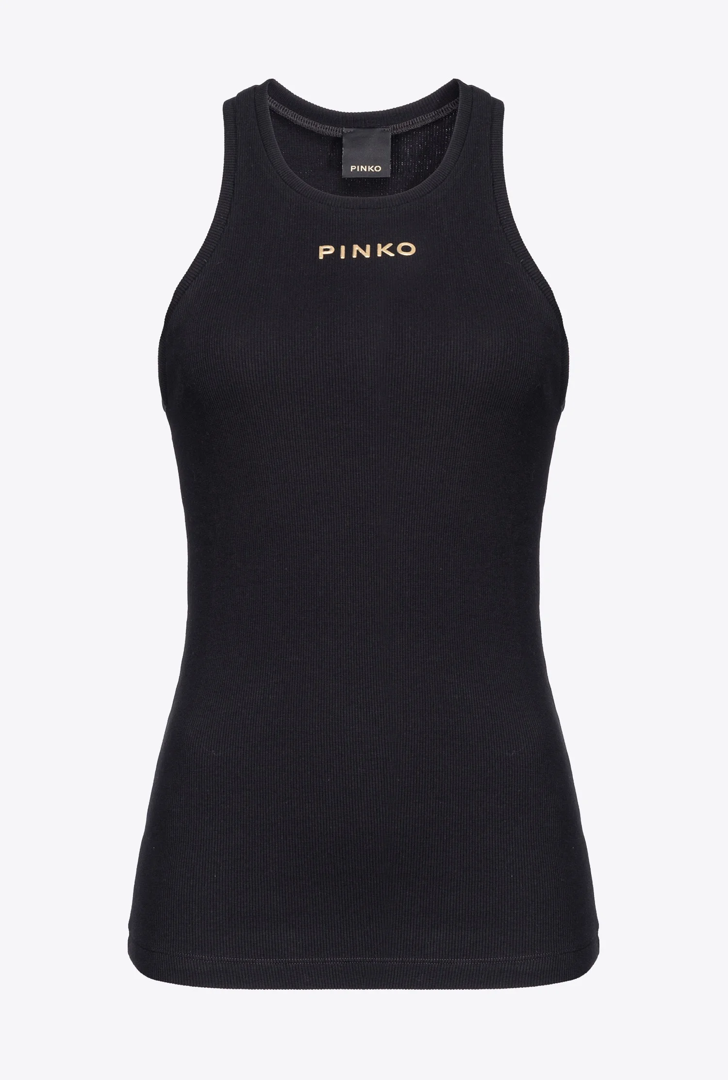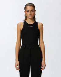 Vest top in ribbed knit cotton fabric. Slim-fitting piece with racerback and custom PINKO logo in the middle on the front. COMPOSITION Outside Fabric: COTTON 95% ELASTANE 5%