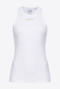 Vest top in ribbed knit cotton fabric. Slim-fitting piece with racerback and custom PINKO logo in the middle on the front. COMPOSITION Outside Fabric: COTTON 95% ELASTANE 5%
