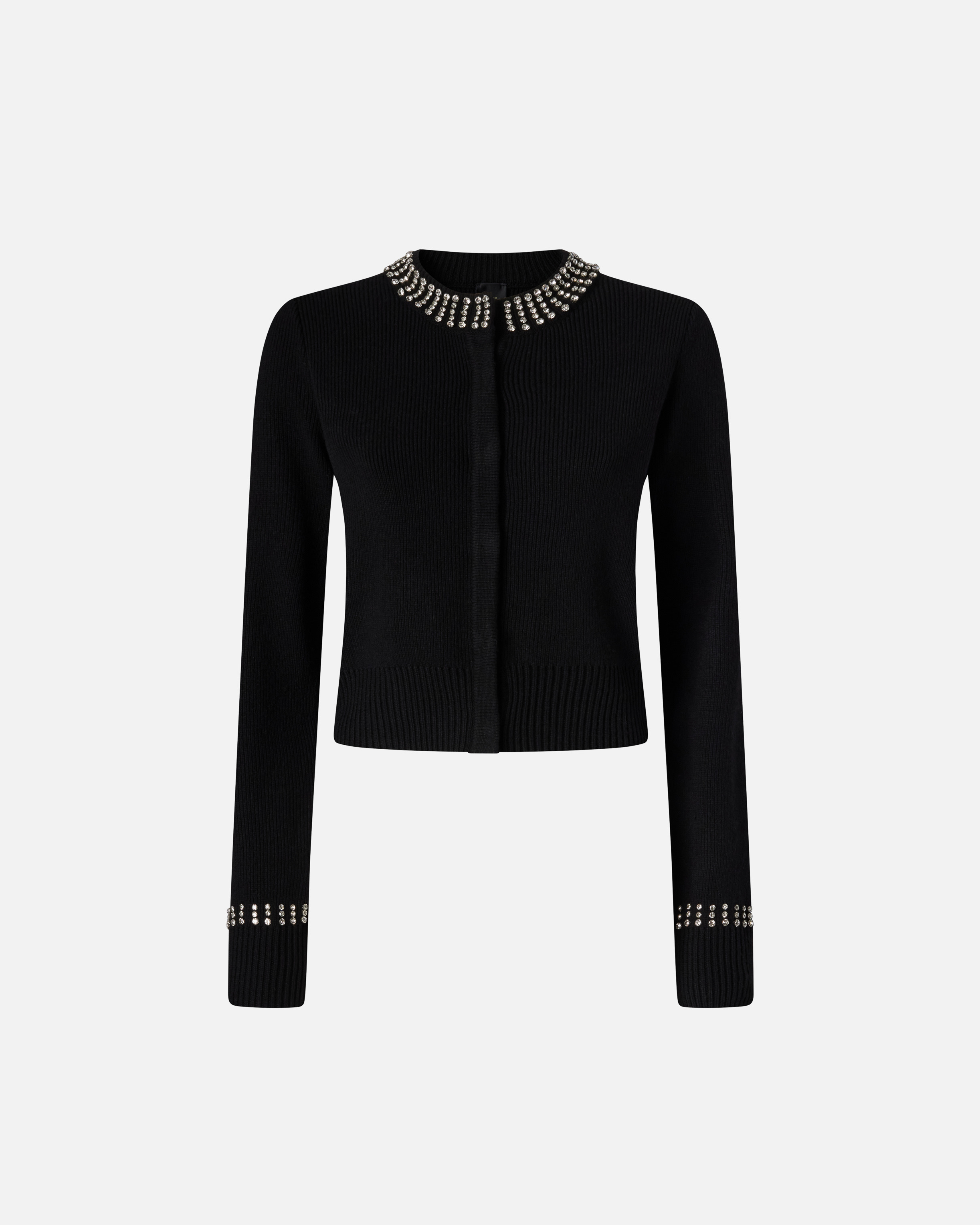 ROUND-NECK CARDIGAN WITH RHINESTONES