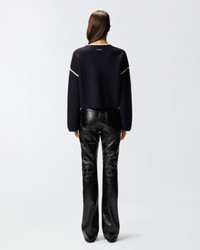 ALICUDI KNITWEAR − 105397A2PKEZ1 Long-sleeved crew-neck sweater in merino wool: a soft and lightweight yarn for an original wardrobe. Make your looks unique with this design embellished with the PINKO lettering logo inside heart-shaped embroidery, filled with shiny rhinestones. The contrasting yarn on the neckline, sleeves and armholes adds a touch of vibrancy to the design, while the final touch is given by the tone-on-tone label with PINKO lettering logo on the back of the neck. The piece has undergone finishing tests to minimise the possible formation of pilling, ensuring greater fabric softness and durability. COMPOSITION Outer Yarn: WOOL 100% - : POLYESTER 54% POLYAMMIDE 20% POLYAMIDE 20% ACRYLIC 20% WOOL 6% - : Glass 100% - : STEEL 100%