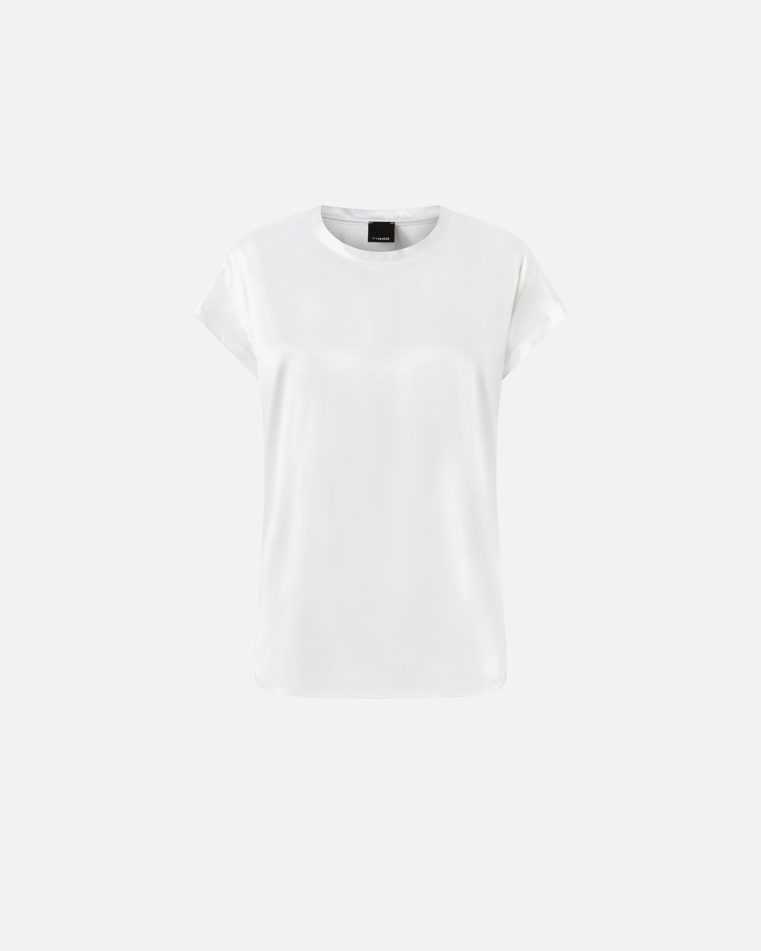 null − 100100A2JRZ05 Women's fluid blouse made of lightweight stretch silk-blend satin, which embellishes any look thanks to its shiny and refined texture. The soft line of the top is completed by a round neckline and short cap sleeves, an original touch that makes it one of a kind. Elegant, versatile and always perfect, this feminine blouse knows how to accompany you on all occasions, from dynamic days when you wear it with a pair of jeans, to special evenings where it becomes the protagonist of expertly combined outfits. COMPOSITION Outside Fabric: SILK 91% ELASTANE 9%