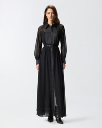 ALDONZA DRESS − 106119A309Z99 Long relaxed-fit shirt dress with long balloon sleeves. This piece is made from semi-sheer georgette fabric, features satin-effect inserts on the shirt-style collar, front button placket and cuffs, and comes with a slip dress with spaghetti straps to help offset the see-through effect. Be daring and wear this simple yet sensual dress for special evenings too. COMPOSITION 1° Outside Fabric: POLYESTER 100% - 2° Outside Fabric: POLYESTER 94% ELASTANE 6% - Lining: POLYESTER 100%