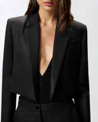 SHINY-EFFECT PINSTRIPED SPENCER JACKET