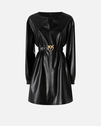 SFUMATO DRESS − 105587A2P4Z99 Short round-neck dress defined by a V-shaped opening on the front and long loose sleeves with dropped shoulders and stretch cuffs. The dress is made from a faux leather coated fabric with a soft feel and a bold, contemporary finish. This fitted style is more cinched on the sides. Complete with a matching-fabric belt with the metal Love Birds Diamond Cut buckle. COMPOSITION Outside Fabric: POLYESTER 100% - coating: POLYURETHANE 100% - Lining: POLYESTER 55% VISCOSE 45%