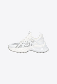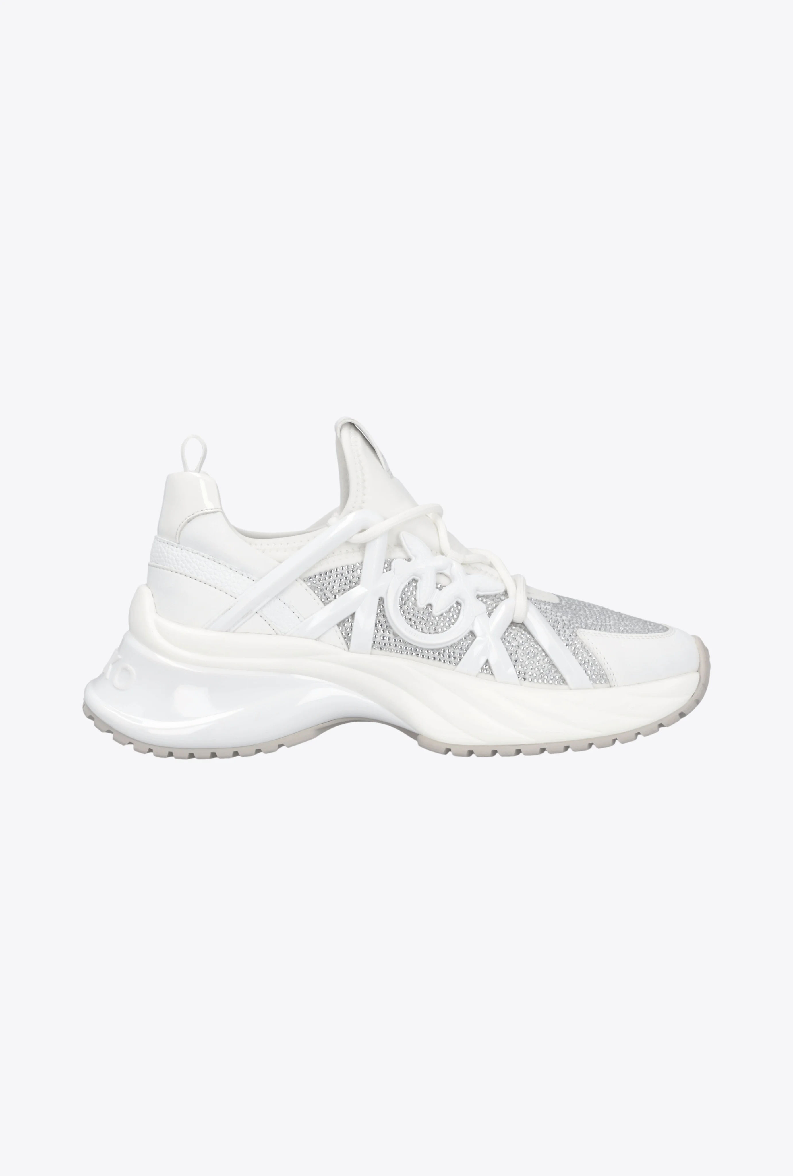 ARIEL 01 TRAINERS − SS0023T014ZF8 Women's sneakers in neoprene-effect technical fabric with exquisite micro crystals and spreading detail in glossy synthetic material customised with the Love Birds logo at the side. The slip-on sneakers feature elastic round laces, a moulded and slightly raised running sole with TPU spoiler, fabric lining and a leather insole. These are the perfect sneakers to add a sporty yet glamorous touch to any daytime look. COMPOSITION Lining: POLYESTER 100% - Upper: POLYESTER 55% POLYURETHANE 45% - Sole: CALF LEATHER 100% CALFSKIN LEATHER 100% - Sole: POLYURETHANE 65% RUBBER 35% ELASTODIENE 35% MEASUREMENTS - Heel height: 7 cm