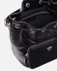105112A2JC-Z99E Small leather Cargo Bucket Bag with a slightly gathered, wrinkled texture and chevron quilting and a cotton lining. A distinctive accessory that is perfect for endless looks, this bag has a drawstring to adjust the fastening and an outer zip pocket to keep your essentials safe. Featuring an adjustable and detachable leather shoulder strap and handle so it can be carried by hand or on the shoulder, the bag is extremely versatile and practical. The refined design is complemented by the Love Birds logo, which embodies the inimitable style of the brand. Activate your PINKO bag: verify the authenticity of your product and access a personalised experience by scanning the Love Birds embroidery on the back of the bag with your smartphone! COMPOSITION Lining: COTTON 100% - Leather: COWHIDE 100% BOVINE SKIN 100% MEASURES W: 0.68 g H: 22.0 cm W: 15.0 cm L: 20.0 cm