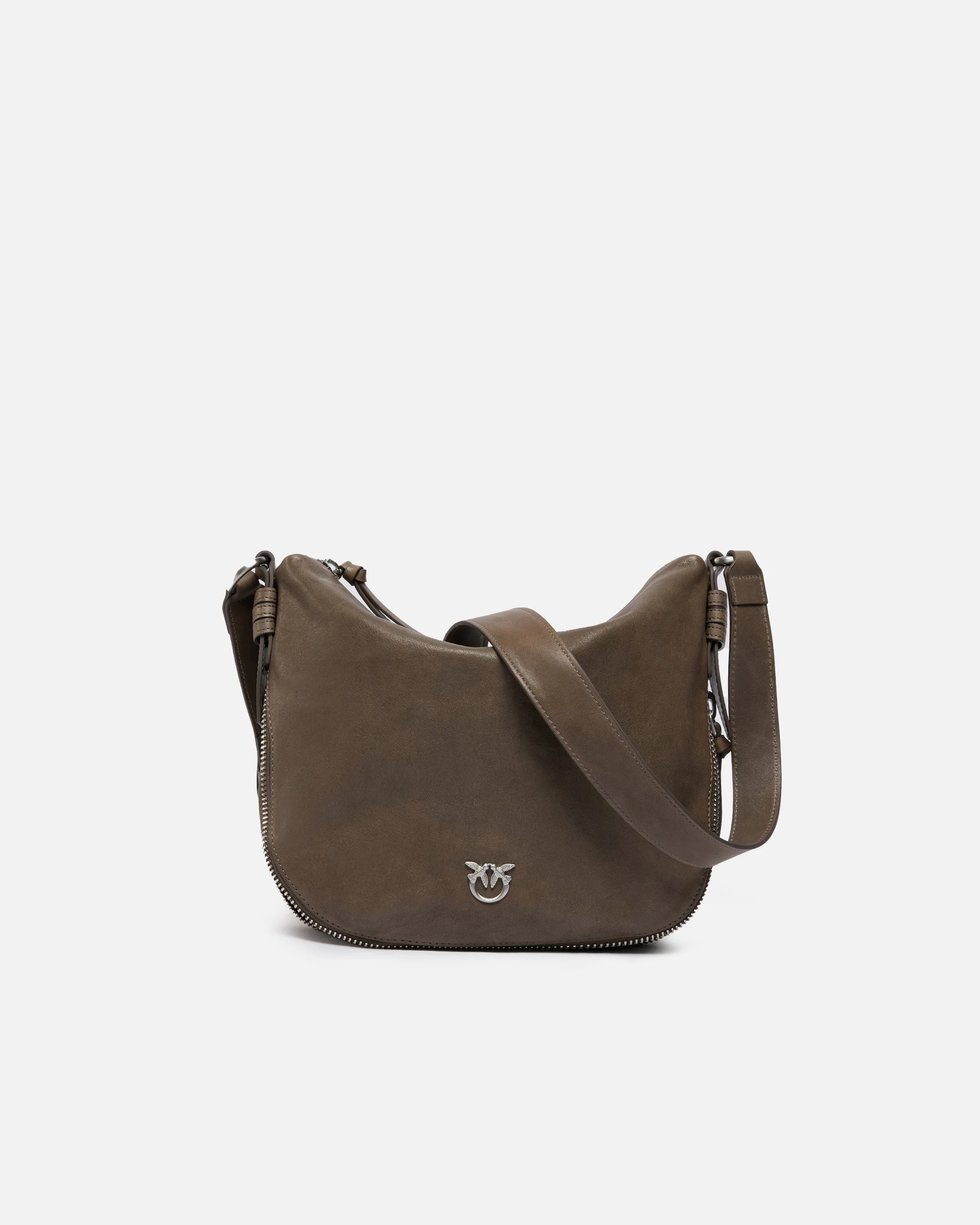 105332A2JG-I68E Small hobo bag in soft leather that comes with a functional zip-around design and with a cotton lining. Featuring an adjustable leather shoulder strap so it can be worn on the shoulder or crossbody, the bag is extremely versatile and practical for everyday use. Understated and refined, the design is complemented by the Love Birds logo, which embodies the inimitable style of the PINKO. Activate your PINKO bag: verify the authenticity of your product and access a personalised experience by scanning the Love Birds embroidery on the back of the bag with your smartphone! COMPOSITION Lining: COTTON 100% - Leather: COWHIDE 100% BOVINE SKIN 100% MEASURES W: 0.56 g H: 25.0 cm W: 9.0 cm L: 28.0 cm