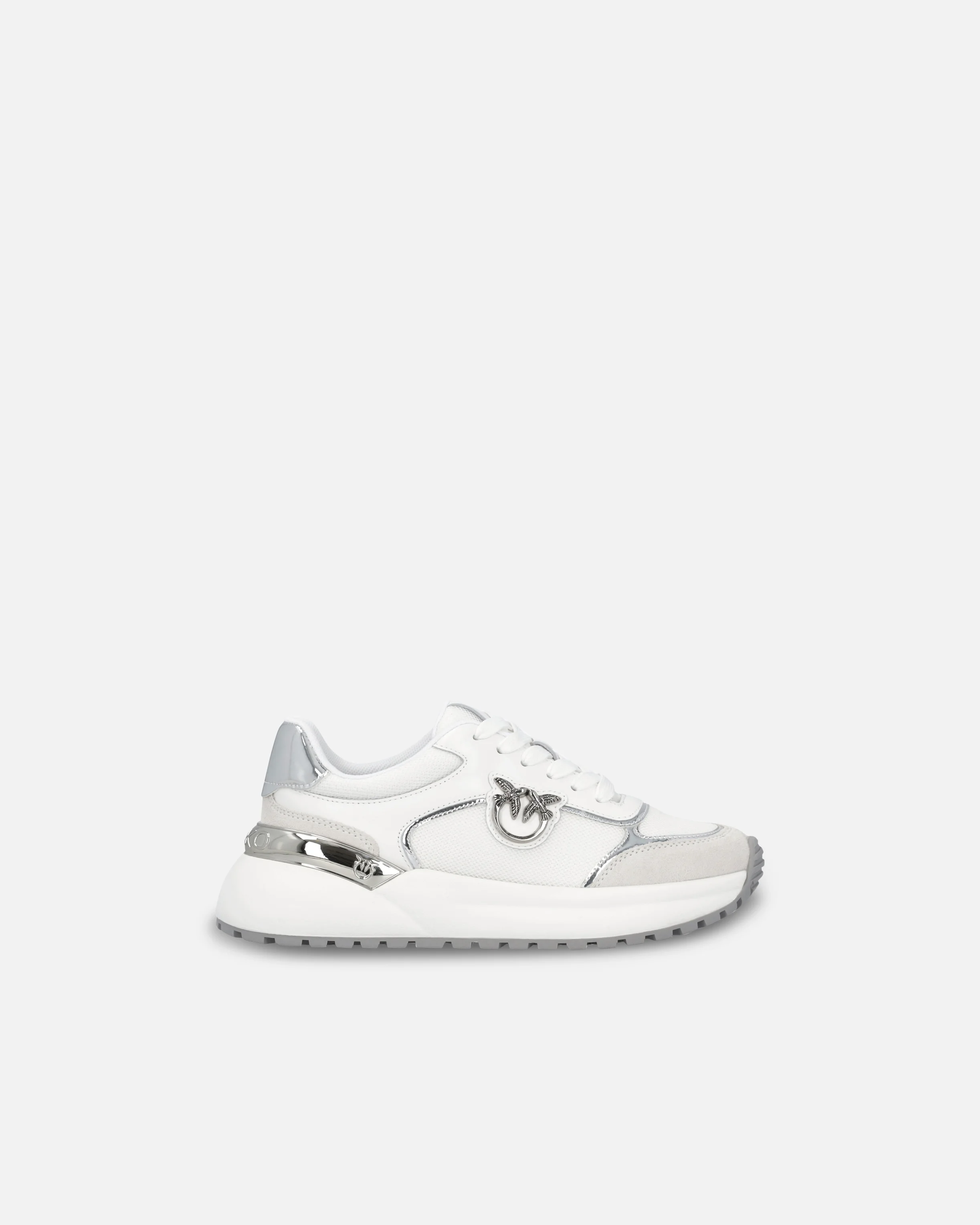 GEM 01 − SS0019P027ZI6 Women's lace-up sneakers in leather-effect material with mesh and laminated mirror-finish details, customised with metal Love Birds logo on the outer side. The shoes are lined with fabric and the leather insole ensures all-day comfort when worn. The sole of the sneaker—moulded and made from rubberised material—is accompanied by a glossy TPU spoiler customised with the Love Birds logo. COMPOSITION Lining: POLYESTER 100% - Upper: CALF LEATHER 51% CALFSKIN LEATHER 51% POLYESTER 40% POLYURETHANE 9% - Sole: CALF LEATHER 100% CALFSKIN LEATHER 100% - Sole: ETHYLENE-VINYL ACETATE 60% RUBBER 32% ELASTODIENE 32% POLYURETHANE 8% MEASUREMENTS - Heel height: 6.5 cm