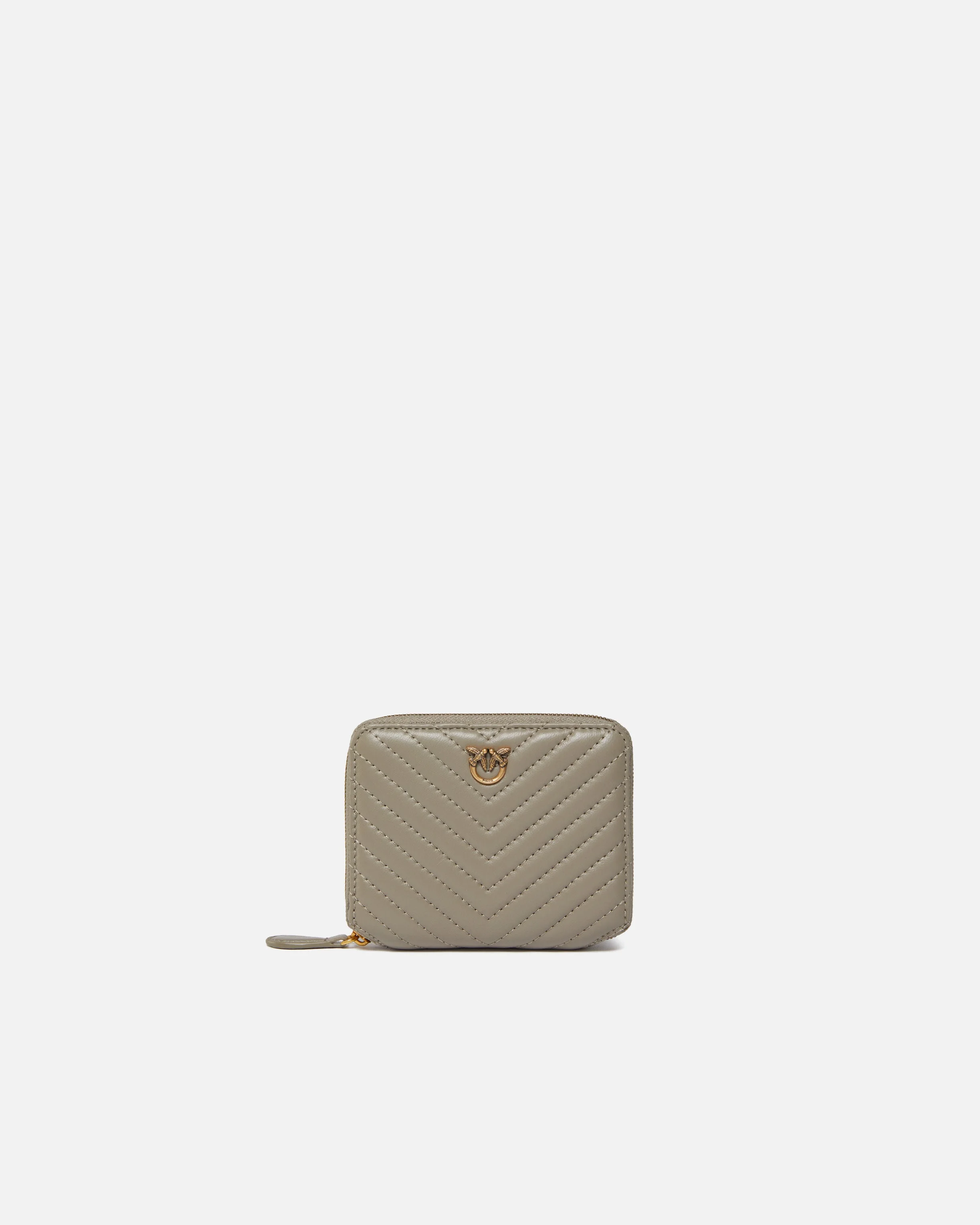 100249A0GK-I68Q Squared-shaped zip-around purse in nappa leather with chevron pattern, featuring the Love Birds Diamond Cut plaque on a leather base. Polycotton-lined interior. Zip fastening. COMPOSITION Leather: SHEEP LEATHER 100% SHEEPSKIN LEATHER 100% - Outside Fabric: POLYAMMIDE 100% POLYAMIDE 100% - coating: POLYURETHANE 100% - Lining: POLYESTER 100% MEASURES W: 0.24 g H: 11.0 cm W: 3.0 cm L: 13.0 cm
