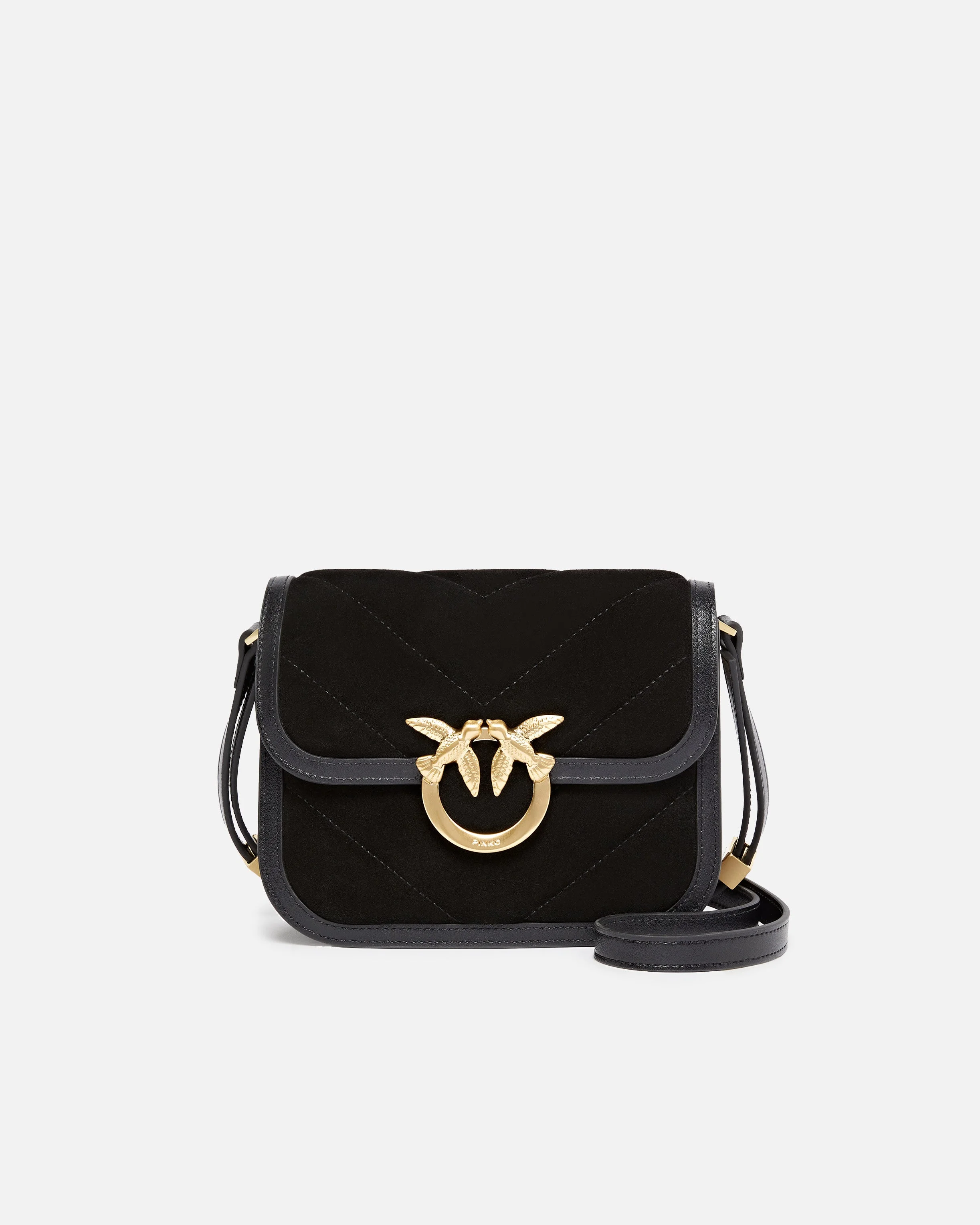104297A2JH-Z99V Mini Love Bag Box shoulder bag in soft suede with top-stitching, a cotton lining and an inner zip pocket. Featuring an adjustable leather shoulder strap and detachable chain so it can be carried by hand or on the shoulder, the bag is extremely versatile and practical. The model has a contemporary and refined style, while the Love Birds Diamond Cut buckle embodies the inimitable PINKO style. Activate your PINKO bag: verify the authenticity of your product and access a personalised experience by scanning the Love Birds embroidery on the back of the bag with your smartphone! COMPOSITION Leather: COWHIDE 100% BOVINE SKIN 100% - Outside Fabric: COWHIDE 100% BOVINE SKIN 100% - 1° Outside Fabric: POLYAMMIDE 50% POLYAMIDE 50% POLYURETHANE 50% - Lining: COTTON 100% MEASURES W: 0.48 g H: 13.0 cm W: 6.0 cm L: 20.0 cm
