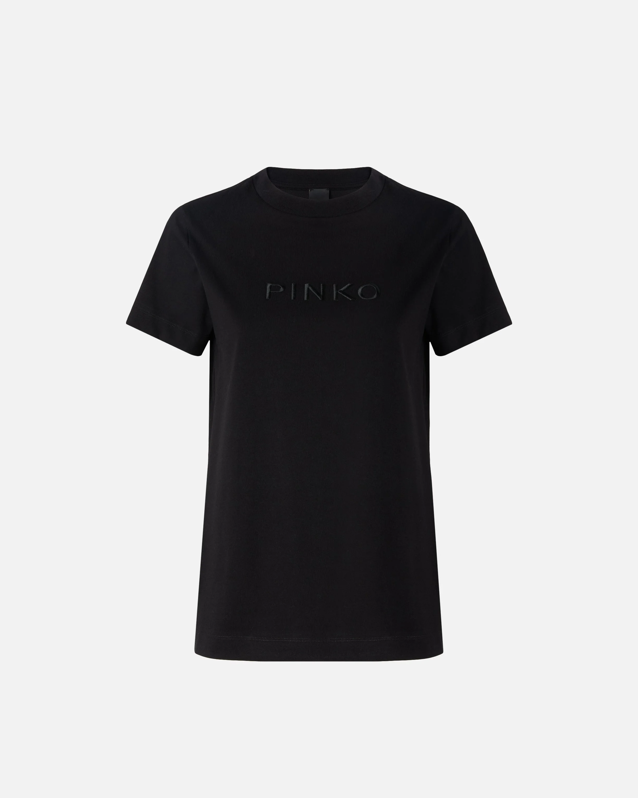 101752A339-Z99 Short-sleeved T-shirt in pure cotton jersey, with a fine-ribbed crew neckline. This model features the iconic PINKO logo lettering on the chest in the form of matching embroidery with a refined shiny effect. This T-shirt will work seamlessly with your favourite trousers, elevating your look in a simple, elegant and original way. COMPOSITION 1° Outside Fabric: COTTON 100% - 2° Outside Fabric: COTTON 100% - : VISCOSE 100%