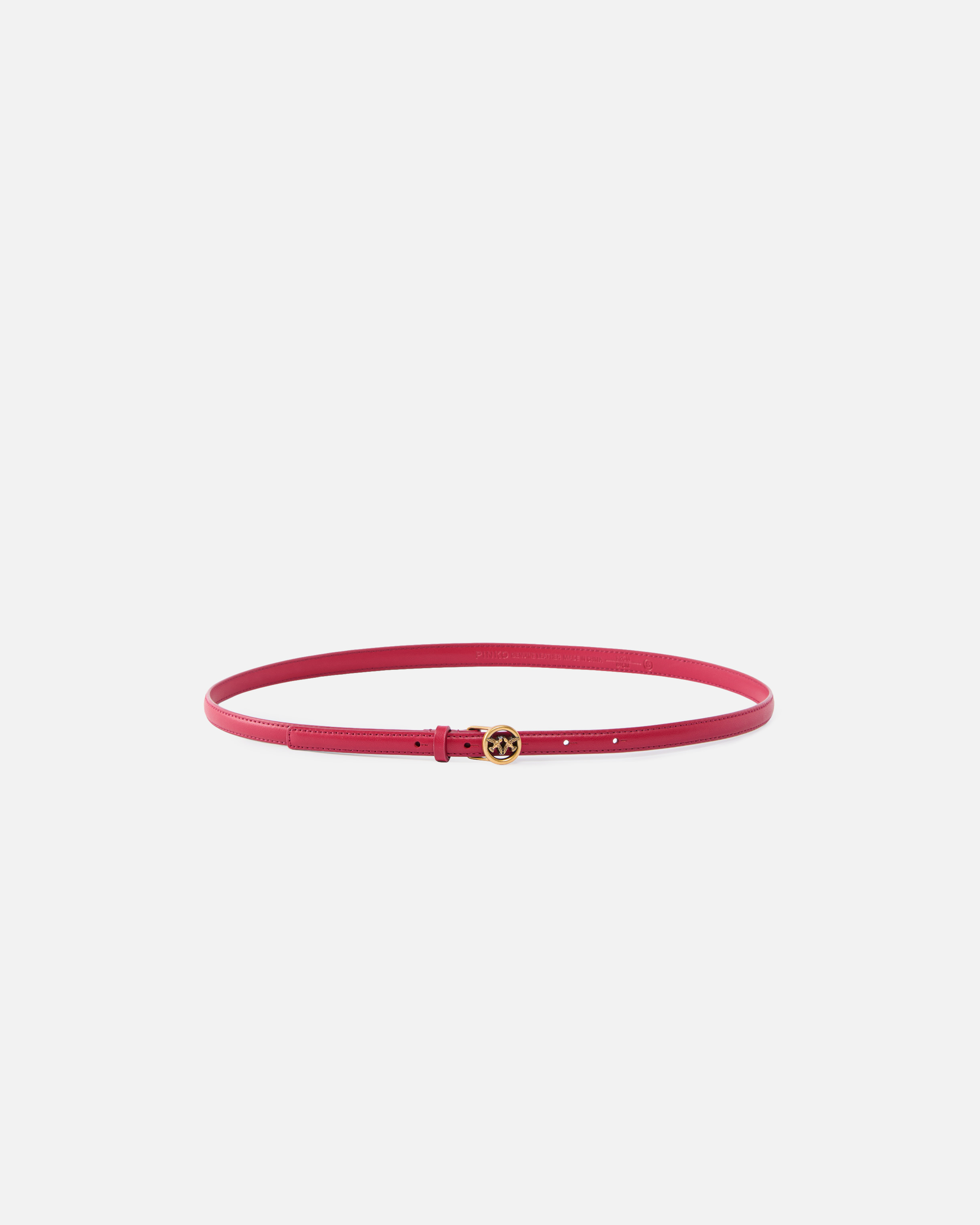 THIN BELT H1 − 105481A0F1OA4Q Refined slim belt with a minimalist design, made of fine calfskin with a distinctive silk-effect finish that gives shine and softness to the touch. The ultra-slim silhouette is characterized by the elegant round buckle in golden metal that echoes the brand's iconic logo, creating a discreet yet recognizable focal point. The essential and sophisticated design easily adapts to different styles, from day to night, always adding a touch of class. Wear it with a sheath dress to define the silhouette or over an oversized sweater to create a glamorous waistline. COMPOSITION Leather: CALF LEATHER 100% CALFSKIN LEATHER 100% - Accessory: Zinc 100% MEASUREMENTS - Height: 1 cm - Length: 101 cm