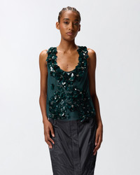 DULCE TOP − 106029A2ZMXX0 Flowing, sleeveless relaxed-fit top in tulle and organza with wide U-neckline. This item is embellished with small crystals and patent-effect sequins of various sizes, embroidered by hand and arranged to form large jewel flowers around the neck and on the front. Team this item with jeans from your wardrobe: all it takes is one detail to make even the most casual outfits shine. COMPOSITION 1° Outside Fabric: POLYAMMIDE 100% POLYAMIDE 100% - 2° Outside Fabric: VISCOSE 100% - : POLYESTER 100% - : Glass 100% - : Brass 100% brass 100%