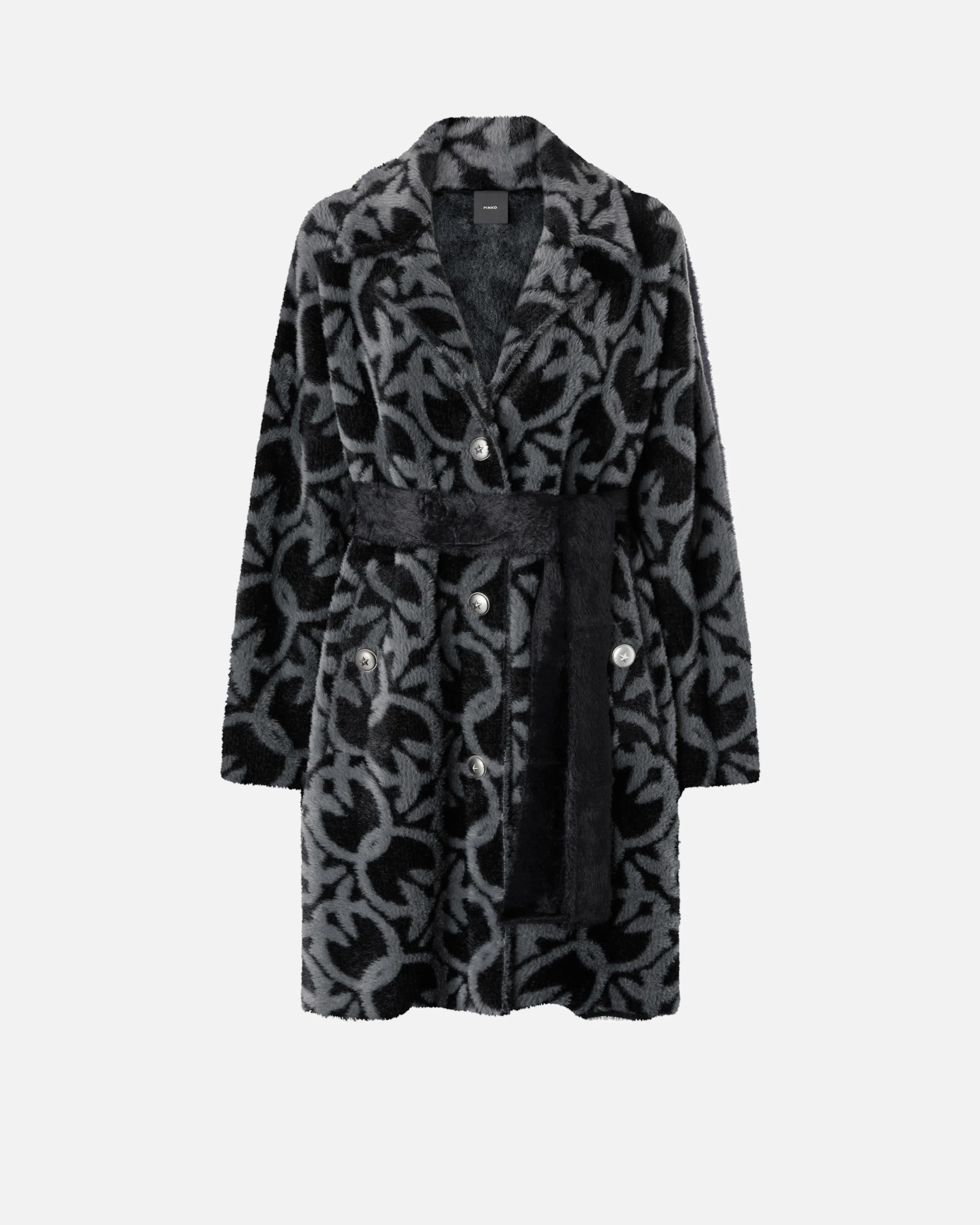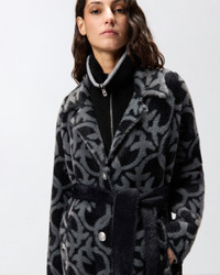 VELOUR-EFFECT COAT WITH JACQUARD LOGO