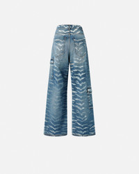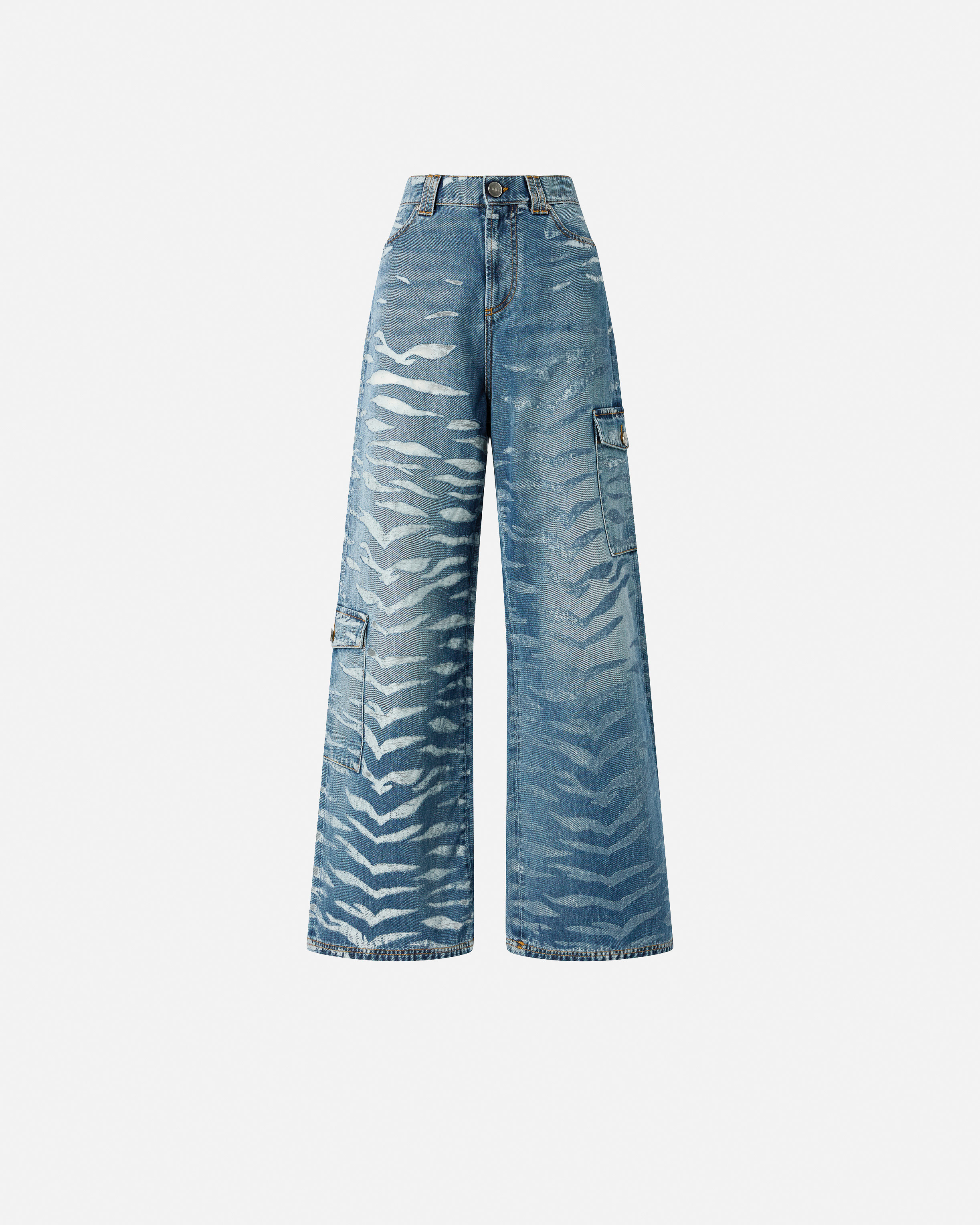 PATRASSO TROUSERS − 103427A2RWPJ6 Wide-leg jeans with maxi-cargo pockets on the legs, made from cotton-blend denim with different types of washes to achieve the final vintage look. The detailing is undoubtedly the real star: in fact, the fabric has a sheer-effect zebra pattern, which was obtained using the devore technique, a special process that allows you to create an interesting contrast between embossed and debossed textures. The design is reproduced individually on every single model, transforming each one into a truly unique piece. These trousers are a must-have for everyday looks, exuding bold, original flavour and fearless femininity. Belt loops and front concealed zip and button fastening. This model is a little wider than the usual size. COMPOSITION Outside Fabric: COTTON 79% POLYAMMIDE 21% POLYAMIDE 21% - Lining: POLYESTER 65% COTTON 35%