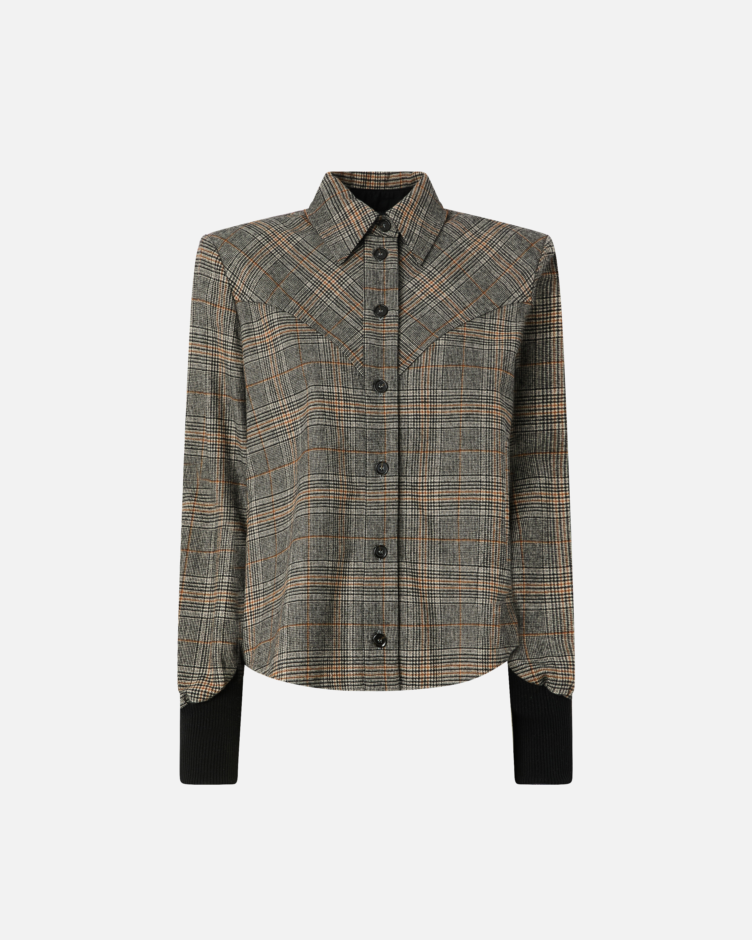 BERTA SHIRT − 106102A36LPIP Long-sleeved shirt with classic collar and front button closure, made of yarn-dyed fabric with contrasting check pattern. The design is enhanced by solid color cuffs that create a bold and contemporary graphic effect. A versatile and structured garment, perfect to wear open over a minimal top or buttoned with tailored trousers for a casual-chic look. COMPOSITION Outside Fabric: POLYESTER 62% WOOL 31% ACRYLIC 4% POLYAMIDE 2% POLYAMMIDE 2% VISCOSE 1% - Lining: COTTON 100% - Accessory: POLYAMMIDE 95% POLYAMIDE 95% ELASTANE 5%